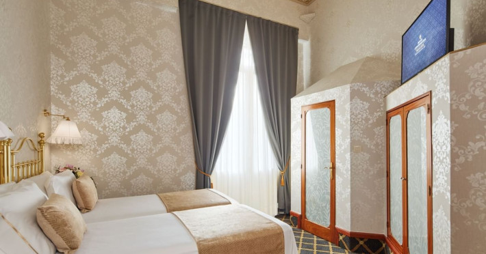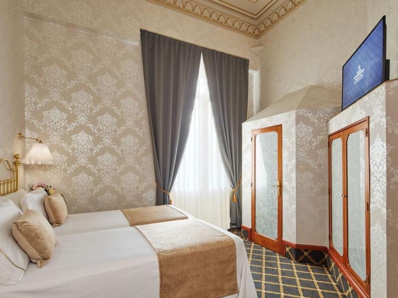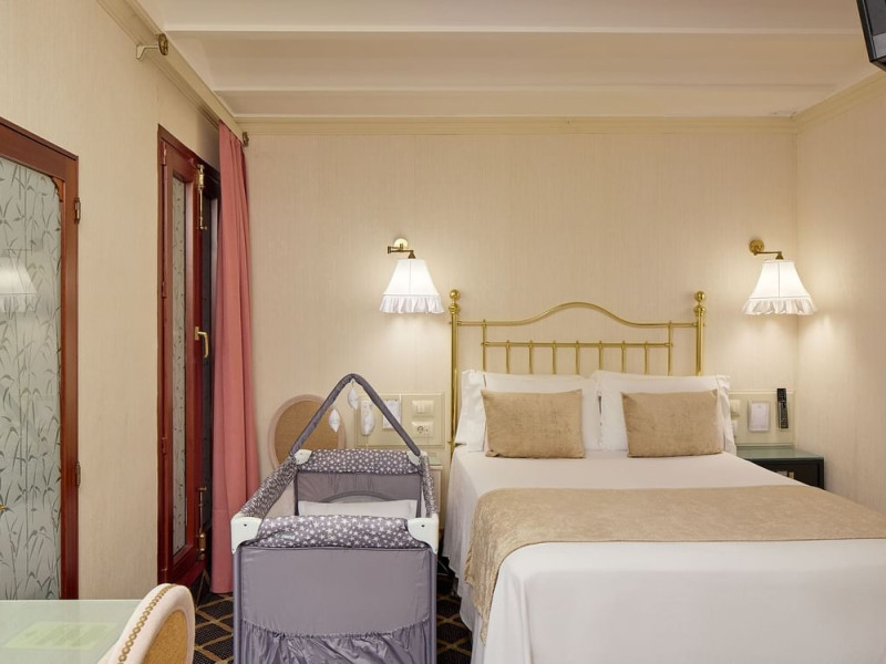 Guests will stay in refined elegance at this classic city hotel, set in a renovated, 19th century palace. As soon as they enter the hotel guests will experience a feeling of luxury thanks to the exquisite Baroque decor. This elaborate interior features priceless chandeliers and elaborate frescoes, and combines with modern facilities to provide a unique setting for a magnificent visit. The hotel has air conditioning and comprises a total of 19 rooms. It features a 24-hour reception and a 24-hour check-out service as well as a hotel safe, currency exchange facilities and lift access to the upper floors. Further amenities include a breakfast room, wireless Internet access throughout the hotel and a laundry service. There is also a car park for those arriving by car..The hotel is surrounded by classy boulevards and lies on the elegant Rambla de Catalunya, just a 5-minute walk from Plaza Catalunya, Barcelonas main square. The surrounding streets are full of Barcelonas distinctive architecture, smart restaurants and exclusive boutiques. Passeig de Gracia train station is approximately 100 m from the hotel and Estacion Del Norte bus stop is roughly 1.8 km away. Barcelona El Prat Airport is about 13 km from the hotel..All rooms are en suite with a shower, a bath and a hairdryer. Guests can enjoy a good nights rest on their double bed. Rooms come further equipped with a direct dial telephone, satellite/cable TV, Internet access as well as a safe and a mini fridge. Moreover, guests can expect to find a microwave, an ironing set, air conditioning and heating as standard..Breakfast, lunch and dinner are served as a buffet at the hotel..American Express, Diners Club, MasterCard and VISA are accepted as methods of payment.