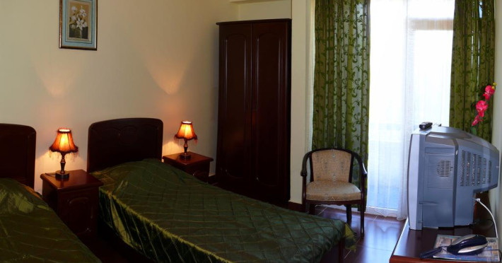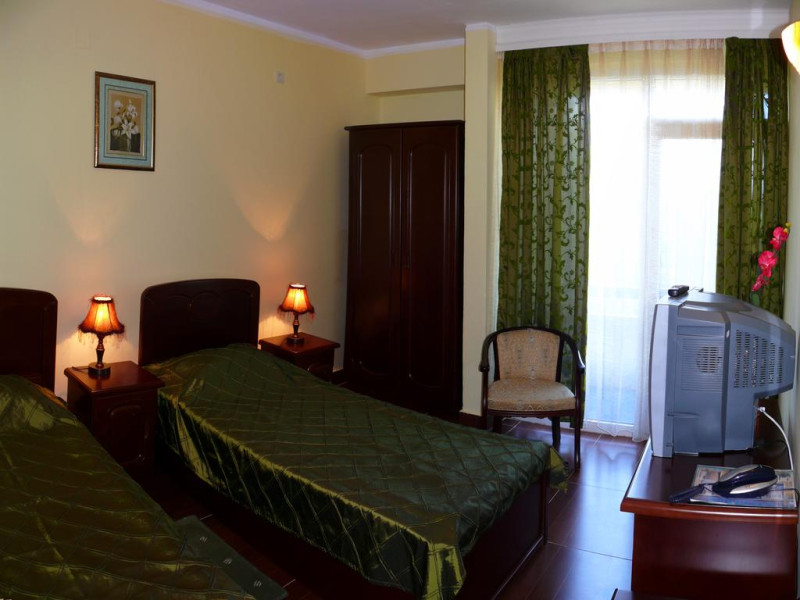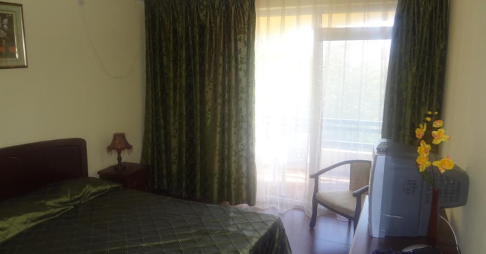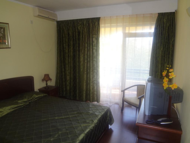 Amplasare: la cateva minute de plaja si de centrul comercial. Facilitati hotel: 114 camere duble (twin sau matrimoniale) receptie, bar, camera pentru bagaje, foisoare, terasa pentru mic dejun, loc de joaca pentru copii, Wi-Fi in zona receptiei, seif la receptie. Facilitati camere: geam termopan cu plasa pentru insecte, TV, frigobar, telefon (pentru apeluri in hotel), grup sanitar propriu (dus, apa calda nonstop), uscator de par. Toate camerele de la etaj au balcon (mare cu masuta si scaune sau mic, de tip frantuzesc).