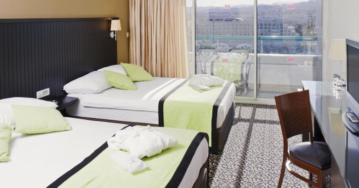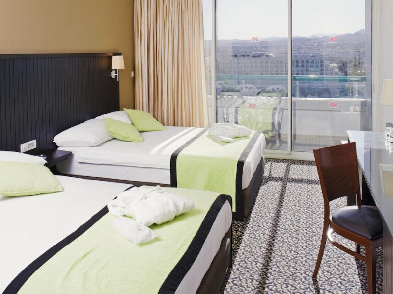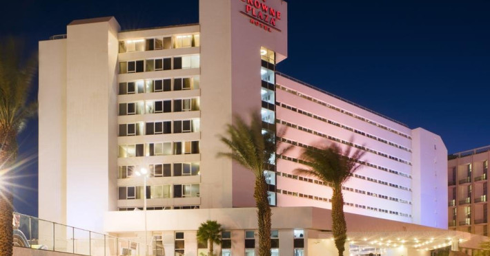Descriere: Crowne Plaza Eilat din grupul Holiday Inn este localizat ultracentral in zona North Beach, cea mai animata a statiunii Eilat. Hotelul Crowne Plaza este alegerea perfecta pentru cupluri cat si pentru familii.Crowne Plaza va asigura tot confortul pentru o vacanta linistita in populara statiune Eilat ce imbina privelisti unice atat asupra marii cat si a desertul arid. Localizare: In North Beach, la 8 minute de mers pe jos de plaja si la 2 kilometri de aeroportul din Eilat. Dotari camere: baie privata cu cada, aer conditionat, halat de baie,TV cu ecran plat,minibar, telefon, cafetiera, facilitati de calcat, bar salate detox. Facilitati:piscina,jacuzzi, 2 restaurante, swimming pool, salon infrumusetare, centru spa,babysitting,perete catarat. Facilitati copii: piscina,parc de joaca Web: http://www.h-i.co.il/hotels/hotels-in-eilat