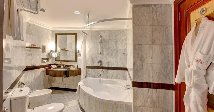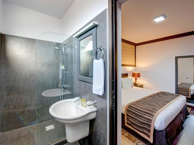 Dotari camere Camerele sunt dotate cu mini bar, facilitati pentru prepararea ceaiului si cafelei, seif, televizor, aer conditionat, telefon, uscator de par, halat si papuci de baie.