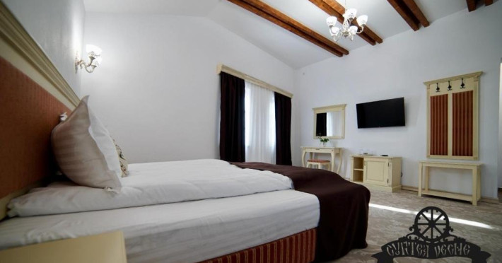 Un han frumos si falnic de 4 Margarete, lang castelul Corvinilor, curte larg si cu buctrii alese, cu pivnite ticsite de butoaie pline ochi cu vinuri fine si cu odi mari si primitoare cu balcoane din lemn cum numai hangiul putea s il gandeasc. Pensiune dispune de 22 de unitati de cazare.