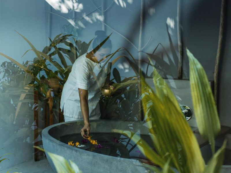 Centrul spa se află in mijlocul unei grădini cu vegetație tropicală luxuriantă și oferă terapii indigene și tratamente tradiționale de vindecare, precum și o piscină de relaxare in aer liber, inconjurată de canapele.