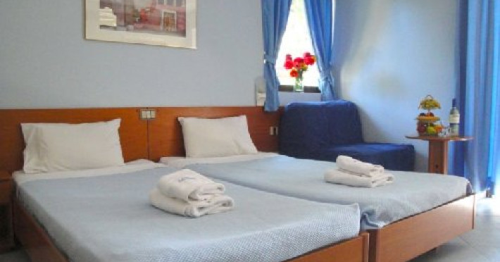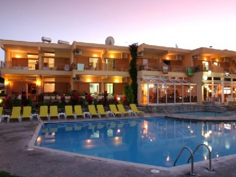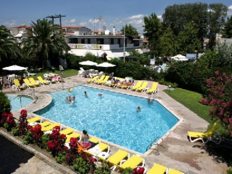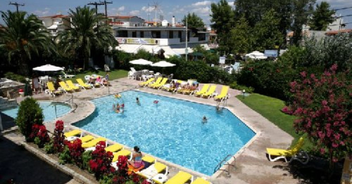 Localizare: in Halkidiki, pe bratul Kassandra, la cca 150 m de centrul localitatii Hanioti si cca 200 m de plaja. In apropiere se afla un supermarket si in centrul statiunii numeroase baruri si taverne. In apropiere se afla un loc de joaca pentru copii si un parc.