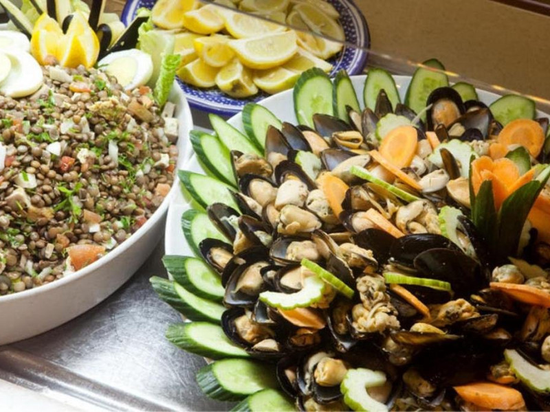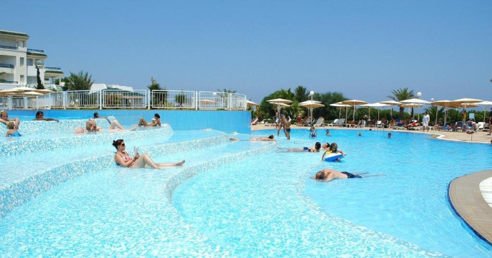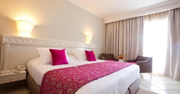 Facilitati hotel: Hotelul dispune de 345 de camere duble, 26 de suite junior si 8 suite senior. Hotelul dispune de patru restaurante si trei baruri: bufetul Maritime, restaurantul a la carte Bellevue, pizzeria Belle Etoile, restaurantul de pe plaja Beau Rivage, barul de pian Grand Bleu, barul Corail si un bar la piscina. De asemenea, are o cafenea maura, Les Arcades, si clubul de noapte Sirocco. Exista o sala de conferinte Carthage, care poate gazdui pana la 450 de persoane, si trei sali pentru grupuri mai mici. Toate salile sunt dotate cu echipamente audiovizuale de inalta performanta, precum si cu o echipa experimentata de tehnicieni. Un centru de afaceri si o parcare proprie sunt disponibile pentru oaspeti. Activitati: Hotelul dispune de doua piscine in aer liber, una pentru adulti si alta pentru copii, o piscina interioara cu jacuzzi. O gama variata de activitati de agrement: doua terenuri de tenis iluminate, darts, biliard, sala de bridge, tenis de masa, tir cu arcul, minigolf, petanque, volei pe plaja, precum si diverse sporturi nautice. Programe de divertisment de zi si de seara, un mini-club pentru copii (5-12 ani) si un centru de fitness cu sala de fitness, masaje, hamam si sauna.