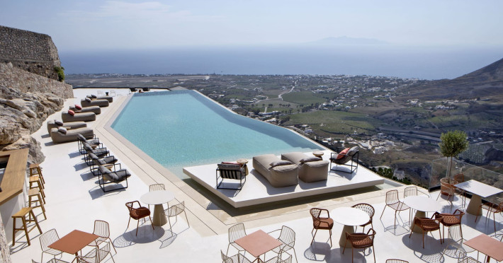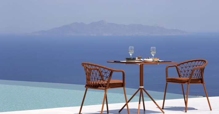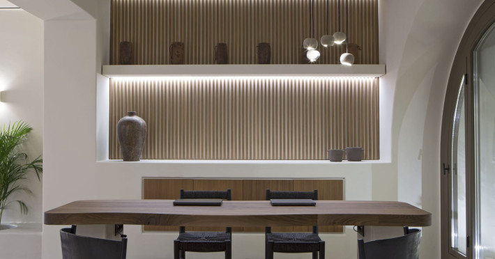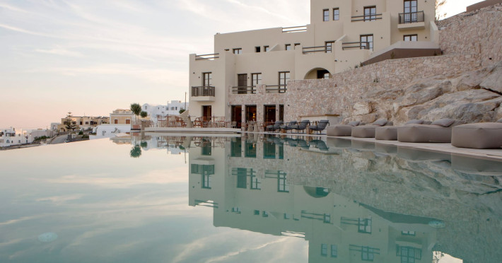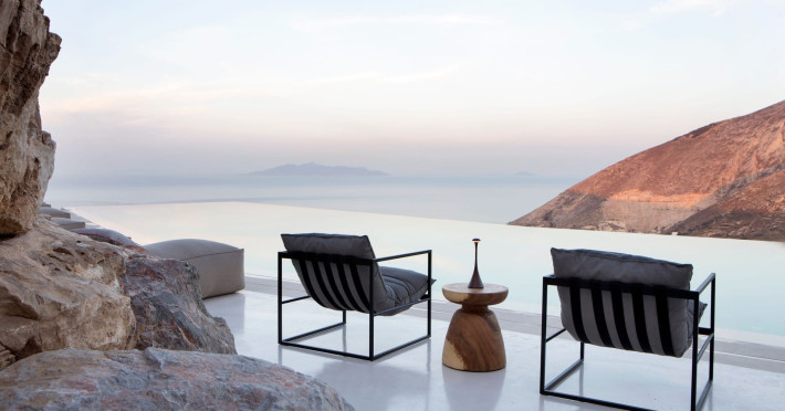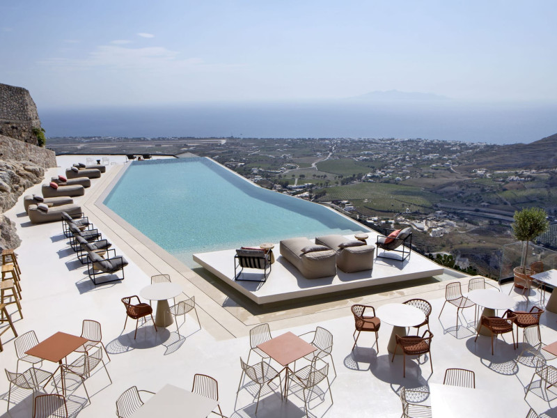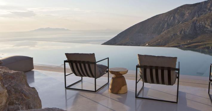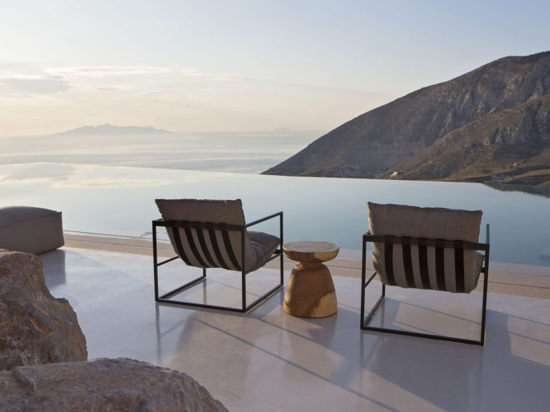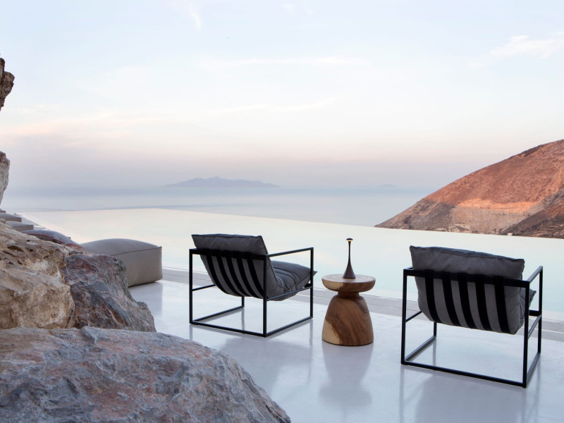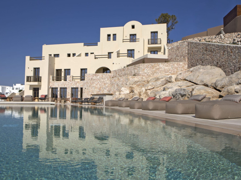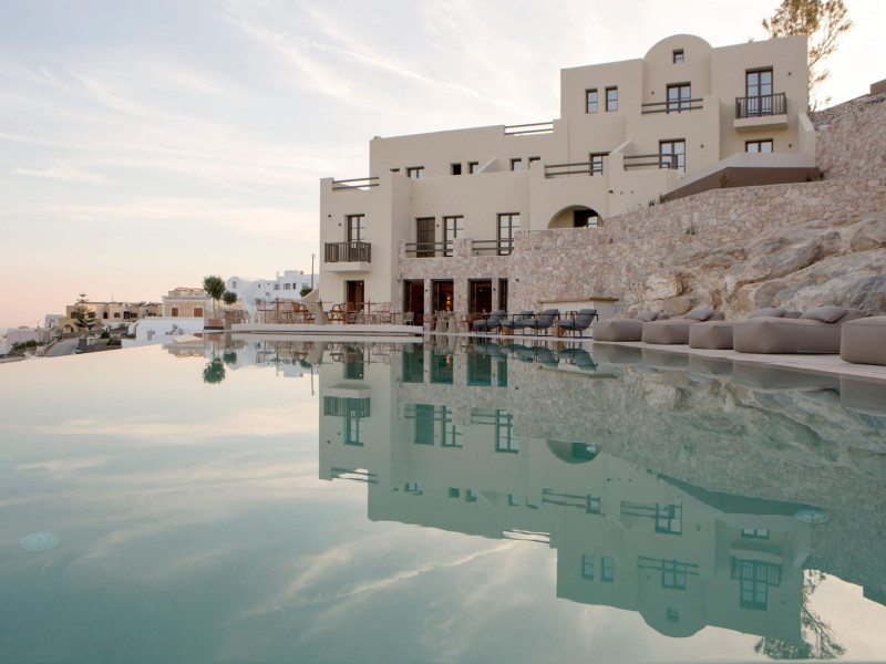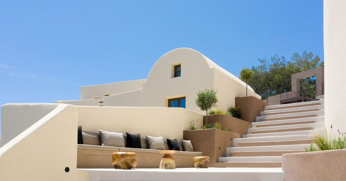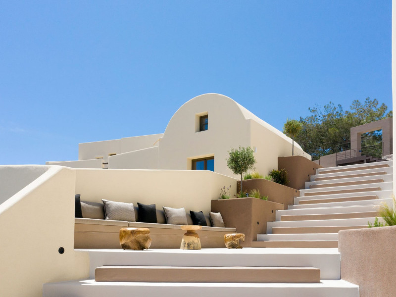 Elessa Hotel is a prestigious 5-star hotel offering outstanding amenities for absolute comfort and relaxation. The hotel features a common swimming pool and a renowned restaurant called Elani. Private parking is also available. Guests can enjoy attentive room service and a 24-hour front desk. The hotel is only for adults and we accept children from the age of 16 and above. The hotel provides luxurious suites and villas with open spaces, showcasing traditional accents and soothing beige tones that create a warm and tranquil atmosphere. Each accommodation includes a private swimming pool or plunge pool with mesmerizing views.