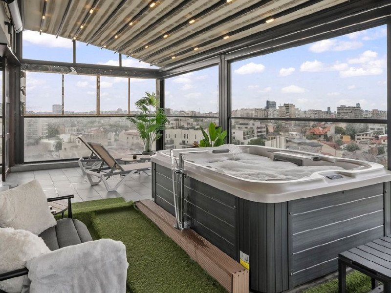 Camera standard ofera un design spatios si elegant, complet cu toate facilitatile de care este nevoie pentru un sejur confortabil. Camera are un pat dublu confortabil, precum si o baie luxoasa. Facilitati: CADA SPA, Terasa cu Pergole si Geamuri automate, Baie cu cada, Birou, Fier de calcat, Fierbator pentru apa, Garderoba, Masina de spalat, Frigider, Televizor prin cablu, Uscator de par, Baie cu dus, Aer conditionat, Bucatarie/chicineta, Cuptor cu microunde Camera Studio ofera lux si confort suprem, cu un design spatios si facilitati de inalta calitate. Camera are un pat dublu, o zona de relaxare, un TV cu ecran plat, precum si o baie luxoasa. Dispune de un balcon privat minunat. Facilitati: CADA SPA, PANORAMA DE 270 grade, 3 TELEVIZOARE OLED si Qled (65 si 55 inch), Baie cu cada, Birou, Fier de calcat, Bucatarie COMPLET UTILATA, Balcon, Fierbator pentru apa, Garderoba, Masina de spalat, Frigider, Organic Cotton, Televizor prin cablu, Uscator de par, Baie cu dus, Aer conditionat, Bucatarie/chicineta, Cuptor cu microunde