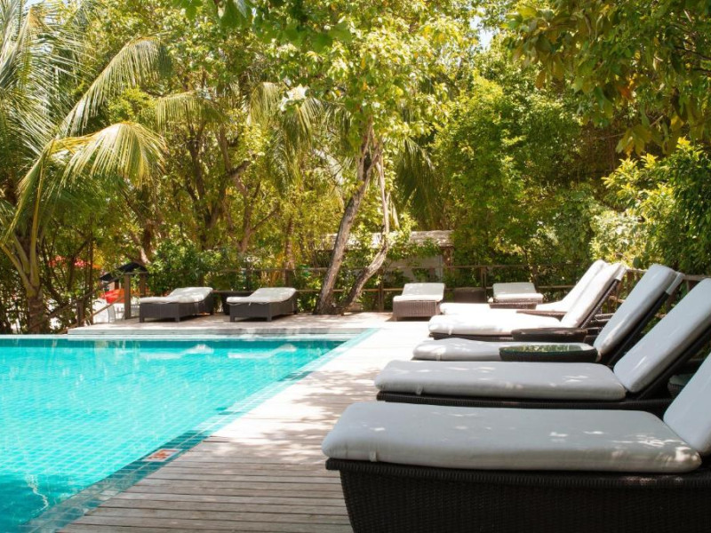 Pe această insulă, proprietatea asigură camere de nefumători, cu aer condiționat și un design in stilul tipic insulelor Maldive. Camerele au un TV cu ecran plat cu canale prin satelit, precum și un minibar cu 2 sticle de apă gratuite pe zi. De asemenea, acestea includ o baie privată cu duș sau cadă și bideu.