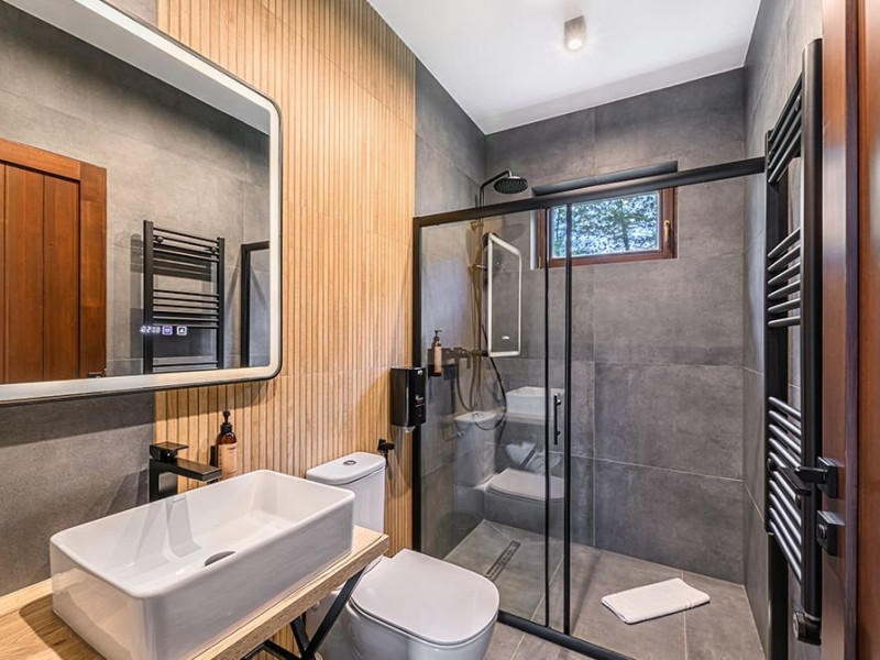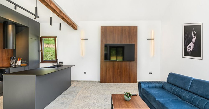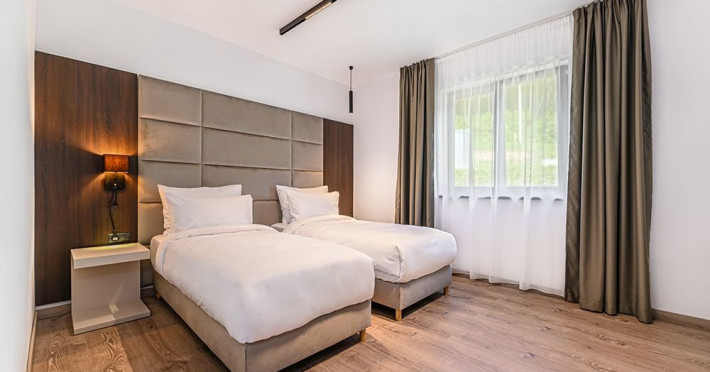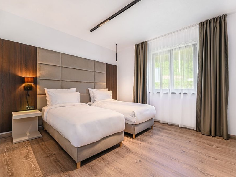 - SMART TV; Free Wifi; Seif; - 2 Paturi Twin: 1 Pat Matrimonial; 1 Canapea extensibila; - Cuptor cu microunde; Masina de spalat vase; - Frigider; Plita electrica; Espressor cafea; - Ustensile bucatarie; Vesela; - Doua bai cu dus; Uscator de par. Fiecare vila beneficiaza de acces propriu, de propria terasa la soare de unde alaturi de grupul de prieteni sau familia te poti bucura defrumusetile naturii. Exista 2 optiuni pentru a face o rezervare: 01. in cele 15 vile cu jacuzzi propriu din totalul de 20; 02: varianta in vila fara jacuzzi.