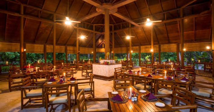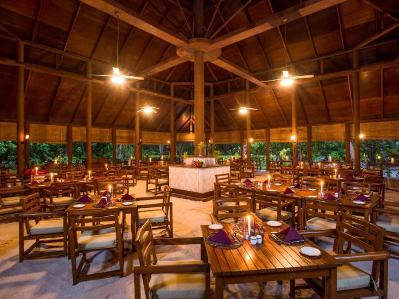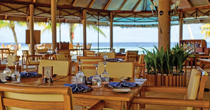 Restaurantul principal al complexului serveste un bufet international. Pentru sucuri proaspete si cocktailuri, barul-restaurant Sunset este locul ideal. Alternativ, Barul Filitheyo oferă o varietate de băuturi.