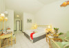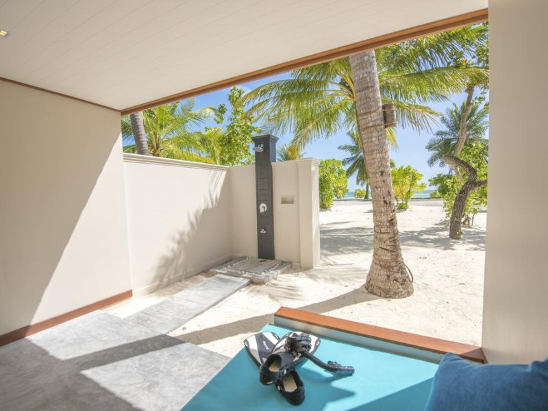 Facilitati camere: aer conditionat, telefon, minibar, terasa cu sezlonguri, prosoape de plaja, facilitati pentru preparare ceai si cafea. Camerele Beach Front au o suprafata de aprox 21 mp, in timp de camerele Deluxe au o suprafata de 59 mp.