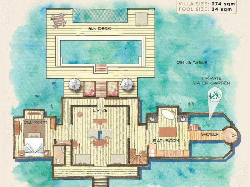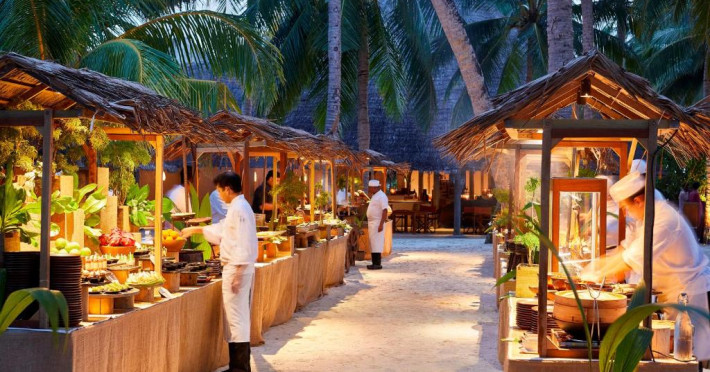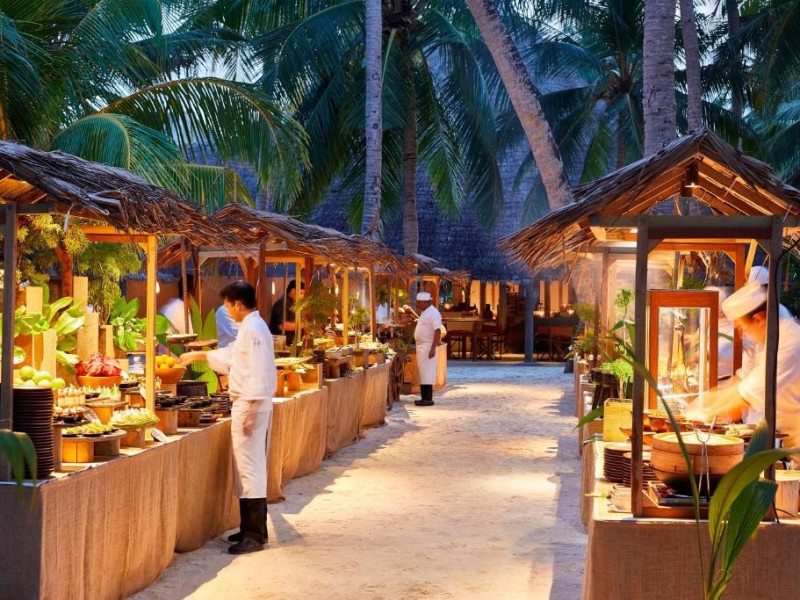 Oaspetii pot savura vin de inaltă calitate si ciocolată gourmet la The Wine Cellar si Underground Chocolate Cave. Restaurantul By the Sea serveste preparate fusion cu specific japonez si peruan. Main Restaurant and Bar oferă bufete internaționale. Over Water Grill serveste fructe de mare proaspete si are vedere panoramică la Oceanul Indian.