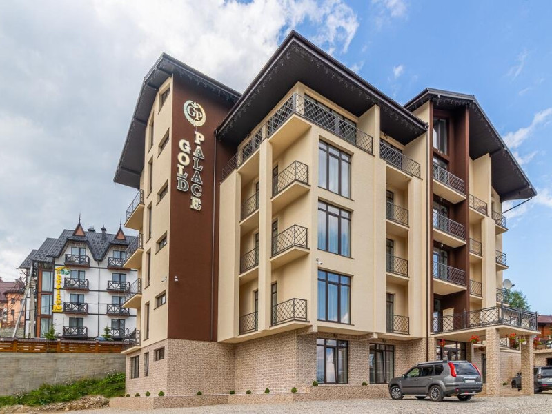 Gold Palace se afl in Bukovel si ofer unitti de cazare cu balcon privat.