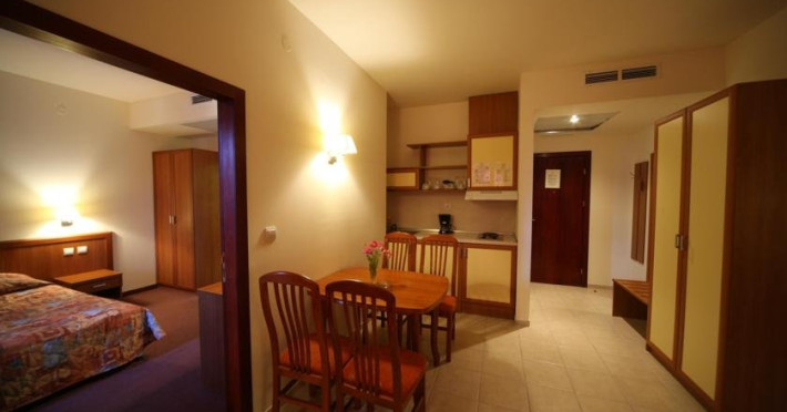 Toate incaperile sunt dotate cu aer conditionat , mobilier si decoratiuni moderne potrivite pentru familiile cu copii. Apartamentele-spatioase , elegant mobilate cu 1 dormitor , living , balcon , 2 bai, aer conditionat , safe, tv satelit ,telefon, safe, bucatarie utilata complet , 2 balcoane. Studiouri - fiecare studio are propria chicineta cu loc de luat masa, 1 dormitor , baie , aer conditionat , tv satelit, balcon. Tip masa: All inclusive