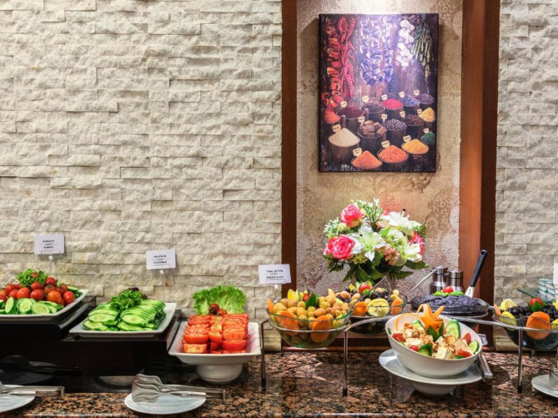 Restaurantul Roof, situat la ultimul etaj, servește selecții internaționale clasice și creații din bucătăria turcească modernă. Meniul include, de asemenea, preparate la grătar, paste, sandvișuri, salate și o mulțime de feluri principale delicioase. Barul de pe acoperiș și barul din hol servesc cocktailuri și băuturi elegante. De asemenea, este disponibil room service.