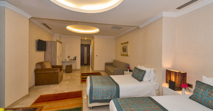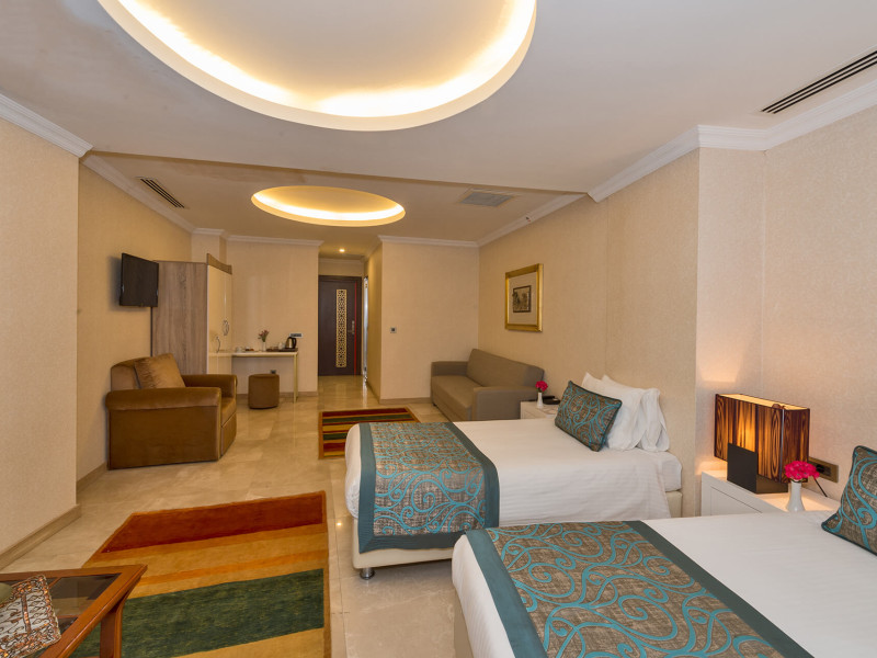 Just a few meters away from a beach is located the aparthotel Great Fortune Hotel. The city centre is also just a few steps away. There is a 24h shuttle between the hotel and the airport 24h a day. Nearby there is a cinema which offers entertainment Just a few meters away from a beach is located the aparthotel Great Fortune Hotel. The city centre is also just a few steps away. There is a 24h shuttle between the hotel and the airport 24h a day. Nearby there is a cinema which offers entertainment in high season. The seasonally air-conditioned, GPS-verified halal hotel has a 24h reception (check-in is possible around the clock), a lobby, Wi-Fi, internet access, a lift, a jacuzzi, a first aid kit, parking spaces (limited) as well as a TV lounge with satellite TV. Outside there is a childrens pool with a non-swimming area. Inside the hotel you can use a heated indoor pool. You can store your valuables in the safe, and your luggage in the hotels storage room. In addition, the hotel Great Fortune Hotel is video-monitored 24h a day. For very young guests, kids chairs can be provided. There is also a laundry and ironing service. Ironing equipment can also be borrowed at the hotel. For your comfort the hotel page will ensure you are looked after. Guests at the accommodation can get a wake-up call from the hotel personnel. If you want to explore the holiday region, you can use the car rental service close to the hotel. At the hotel reception, tickets are offered for excursions in the area. For guests on their honeymoon, the hotel has special offers such as champagne or flowers in the room. In your hotel, a lot of focus is placed on sustainability. This includes waste segregation in the rooms, the hotels own recycling bins, a central room air-conditioning and environmentally-friendly cleaning. That is why the hotel Great Fortune Hotel was also awarded a sustainability certificate. For water may incur extra charges at the hotel. The hotel requires that all guests pay a deposit upon arrival. Euro/Master Card and Visa are accepted as means of payment. Due to its barrier-free facilities , such as an automatic hotel door, separate, barrier-free entrances, wheelchair accessible rooms, a wheelchair accessible lift, a handrail in the elevator and wheelchair-accessible bathrooms, the hotel is also suitable for wheelchair users. Catering As catering services the hotel offers breakfast only and self-catering. Breakfast is offered continental or as brunch. All Inclusive Light includes beer. As part of the all-inclusive service, water (24h) as well as coffee and tea (24h) are available at no extra charge. Your physical well-being is catered for by a restaurant. The drinks menu of the hotel includes water, coffee and tea and beer. Distances Nearest town: approximately at 5 m Airport: approximately at 45 km Bus stop: approximately at 5 m Nearest bank: approximately at 5 m Sports amp; Leisure A sauna awaits you in the hotels own wellness area. The hotel also offers massages. Let yourself be pampered in the Hamam. Additional information The 6-storey hotel has a total of 62 rooms. This hotel is gay-friendly. The hotel staff speak English and Turkish.