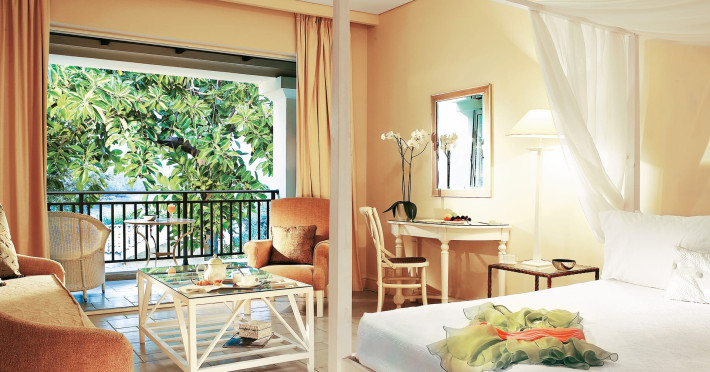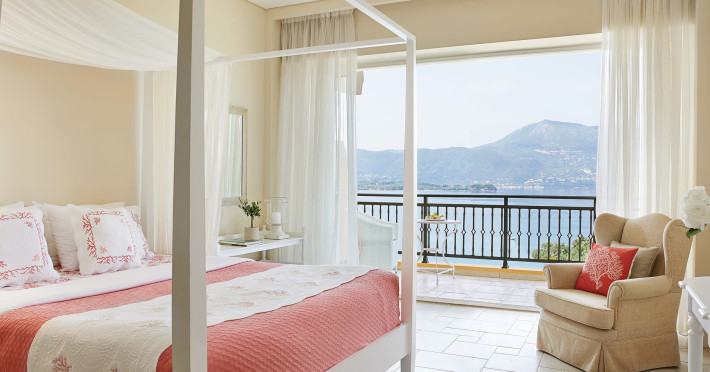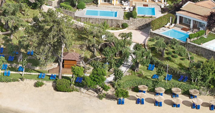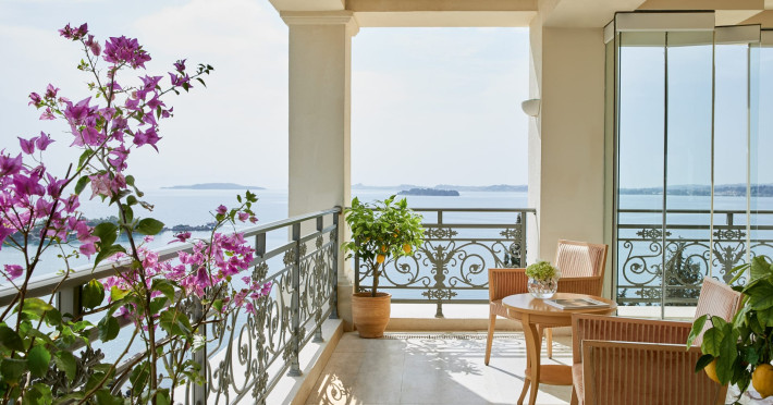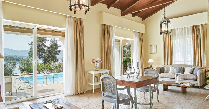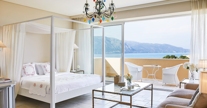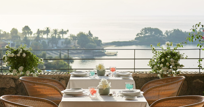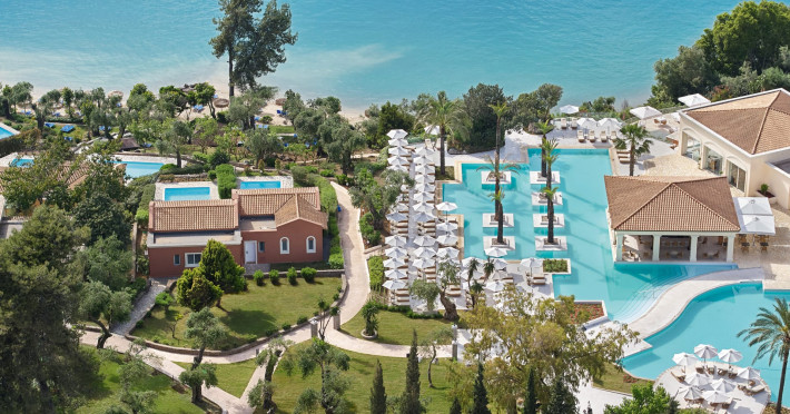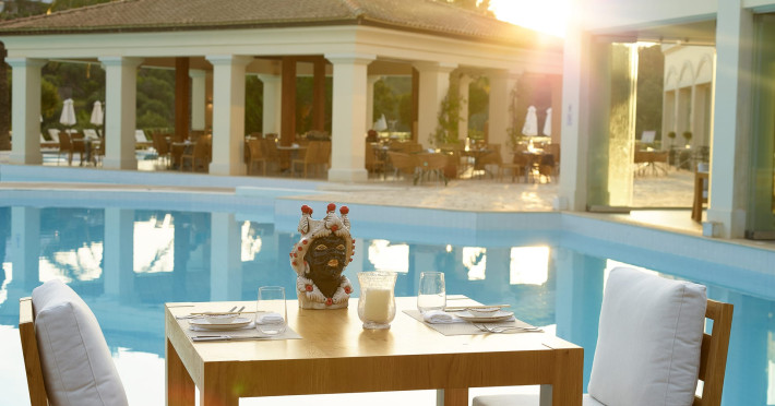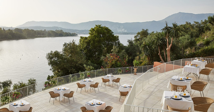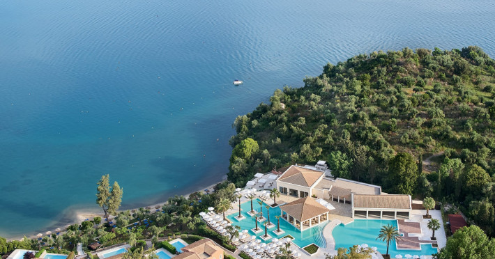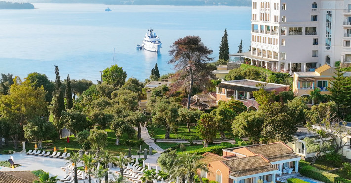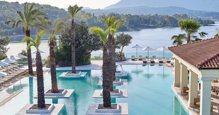 Gloriously positioned on Kommeno Peninsula with thrilling views, a belle epoque beach and a giant pool jardin. Eva Palace is nestled in cypress gardens and olive groves only 10 minutes from Corfu town – yet feels worlds away: secluded, framed by 2 sparkling seas with a grand boutique feel into it.