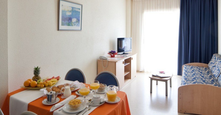 Descriere HOTEL H TOP ROYAL SUN SUITES: Hotel cu servicii dedicate familiilor, situat intr-o zona linistita din Santa Susana, la 5 minute plimbare de plaja.