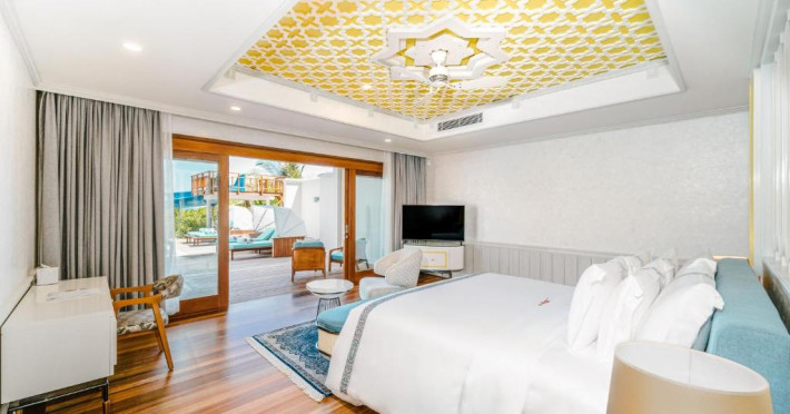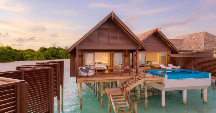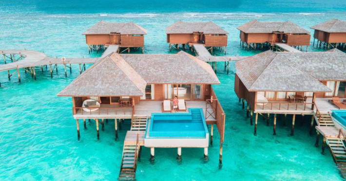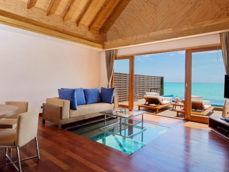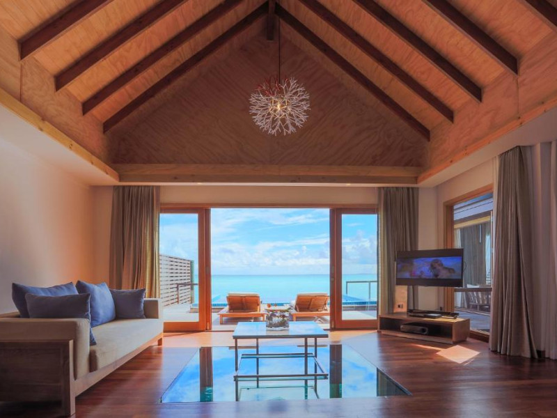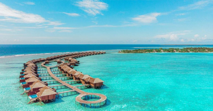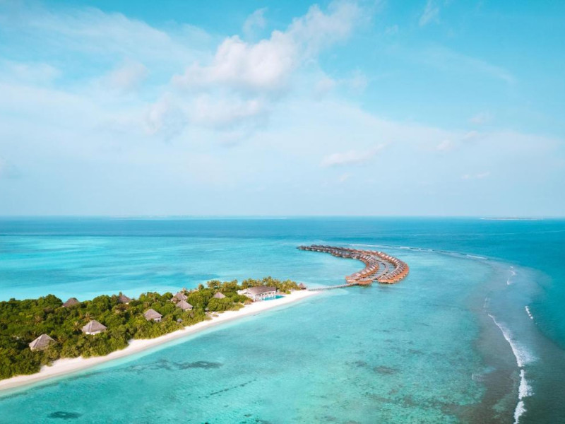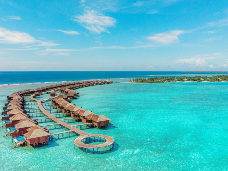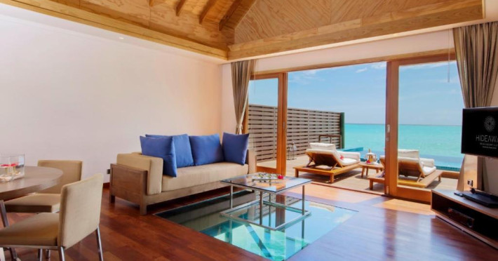 Hideaway Beach Resort & Spa se află la 50 de minute de zbor intern, urmat de o călătorie de 20 de minute cu barca cu motor de la Aeroportul Național Hanimaadhoo.