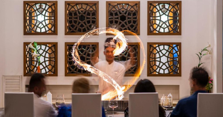 Restaurantul Matheefaru are vedere superbă la mare și servește preparate internaționale. Restaurantul asiatic Samsara este situat deasupra apei si oferă preparate indiene moderne. Localul Meeru Bar and Grill oferă specialități europene contemporane, precum și fructe de mare, pizza și gustări.