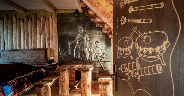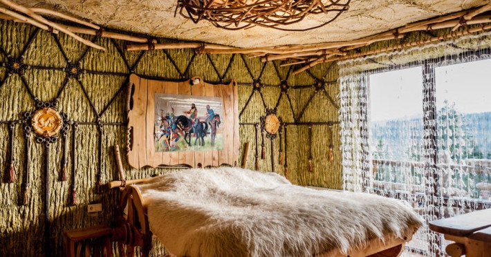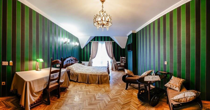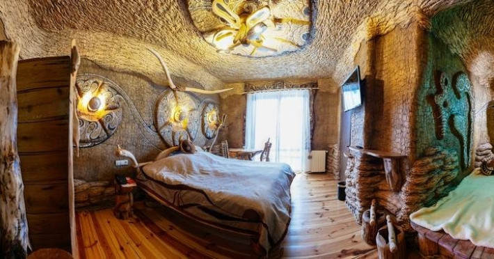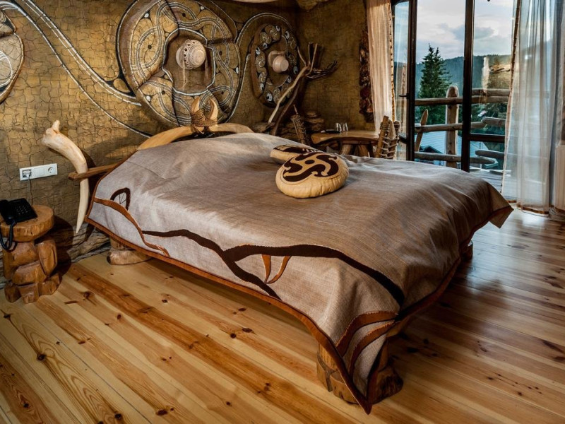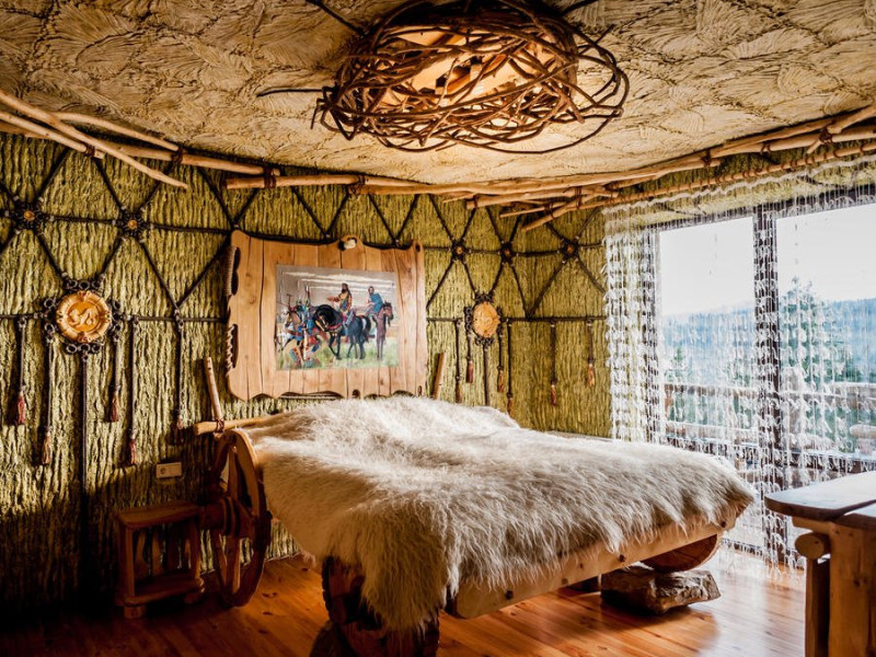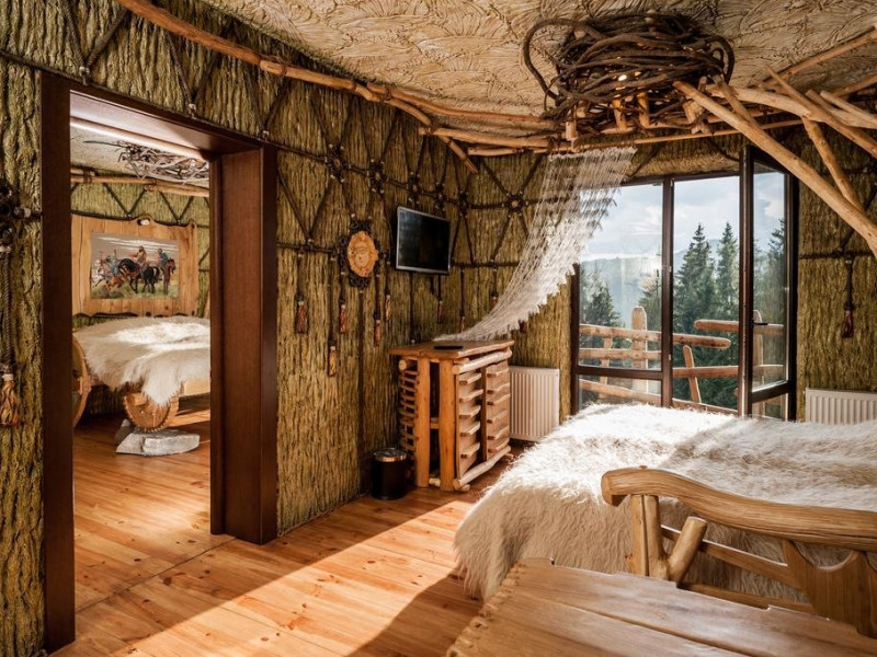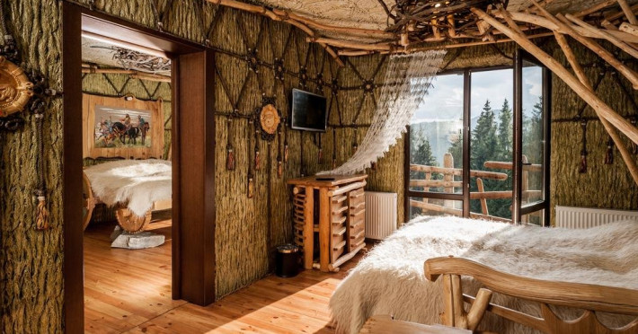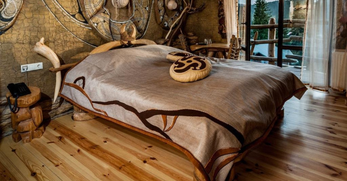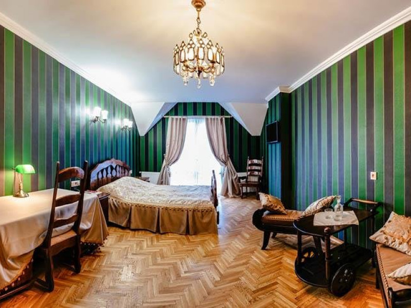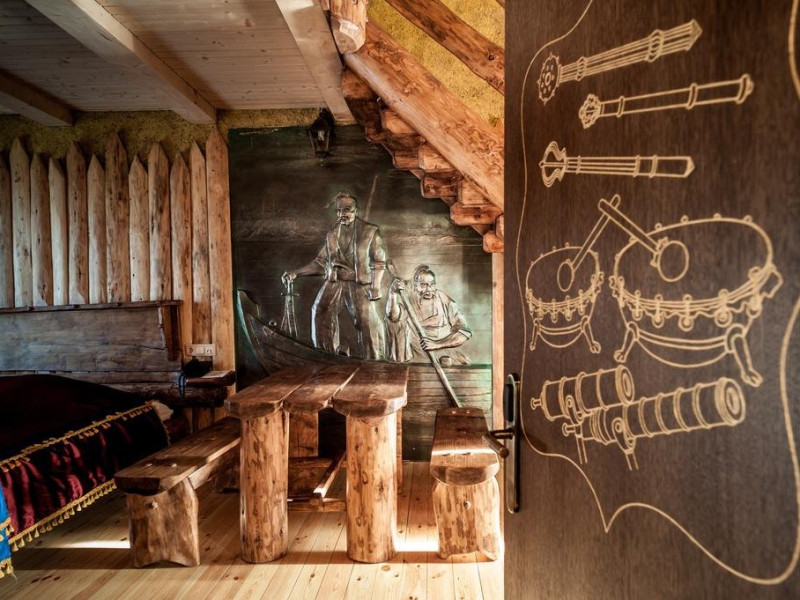 Localizare: In satul Polyanytsya, la 3 km de staTiunea de schi Bukovel. Descriere: Hotelul are patru etaje unde fiecare din cele 10 apartamente este proiectat in stilul perioadei particulare a istoriei ucrainene: Preistoria, cultura Trypillian, vremurile din Scythia, Rus, epoca domneasca, Serbdomoria, timpul cazacilor, miscarea de eliberare nationala, clasic. La parter este un apartament dublu 'Tineret'. La primul etaj sunt 2 apartamente Semi Deluxe ('Pestera' si 'Trypillia') si 1 apartament de doua camere Deluxe ('Scythia'). La etajul al doilea se afla 2 apartamente Semi Deluxe ('Kyiv Rus' si 'Serfdom') si 2 apartamente de doua niveluri Deluxe ('The Princely' si 'Cossacks'). La etajul al treilea sunt 2 apartamente Semi Deluxe ('UPA' - armata ucraineana de razboi si 'Classic'). Facilitati hotel: Receptie, ala de mese (cu semineu), tenis de masa, biblioteca istoriei ucrainiene, parcare (la 400 m de hotel cu transfer de la parcare la hotel), camera special amenajata pentru uscarea echipamentului de schi. Baie Rusa cu o piscina (intr-o casa separata) - 200 UAH pe 6 persoane pe ora, tariful pentru fiecare persoana suplimentara este de 25 UAH. Cel mai apropiat magazin este la 400 m. Dotari camere: Fiecare camera include un interior traditional carpatin si un balcon cu vedere la Muntii Carpati. Camera standard are un pat dublu, un dulap, un televizor LED 32, o masa, 2 scaune, un telefon intern, un seif, un balcon si o baie (dus, uscator de par, articole de toaleta). Suita semi-deluxe are un pat dublu sau 2 paturi de o persoana, un dulap, un televizor LED 32, o masa, 2 scaune, un telefon intern, un seif, un balcon si o baie (dus, uscator de par, articole de toaleta). Suit Deluxe are 2 paturi duble, un dulap, un televizor LED 32, o masa, 2 scaune sau banci, un frigider, un telefon intern, un seif, un balcon si o baie (dus, uscator de par, articole de toaleta). Astfel de apartamente, cum ar fi 'The Princely' si 'Cazaci', au doua nivele. Web:http://www.historyhotel.com.ua/
