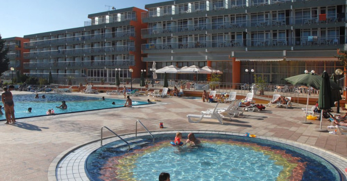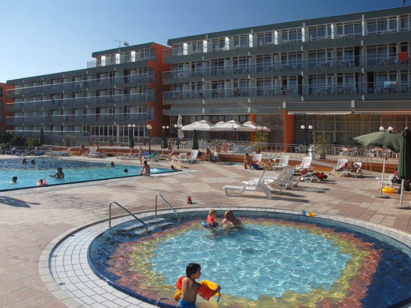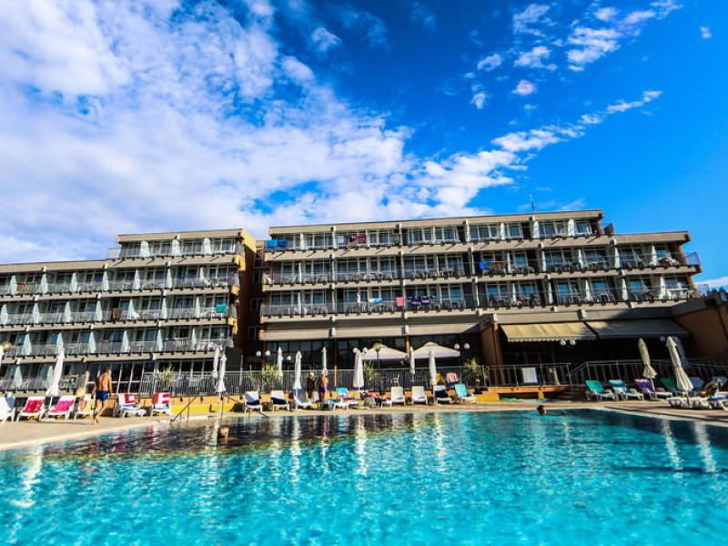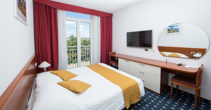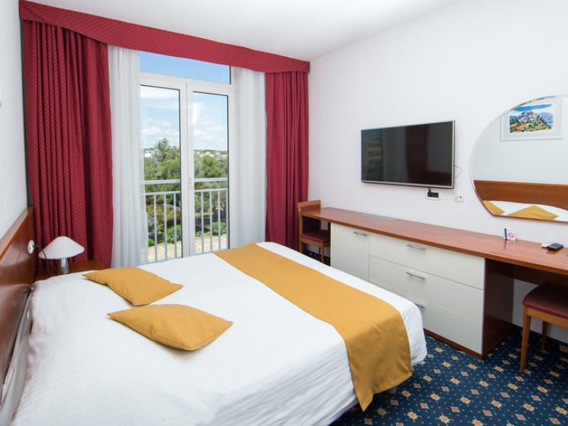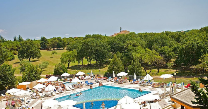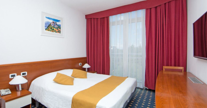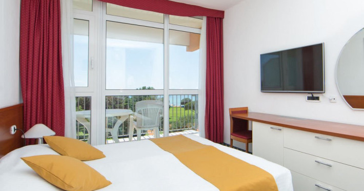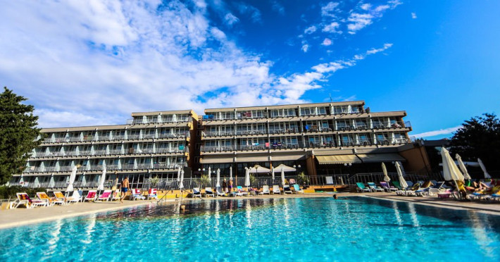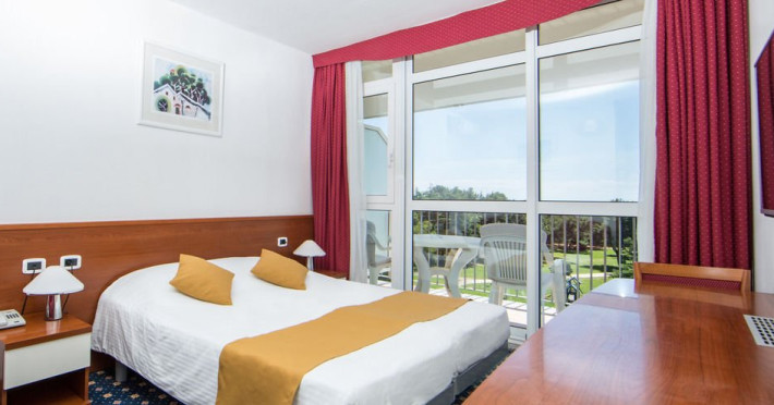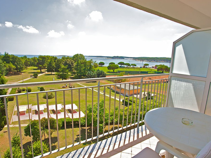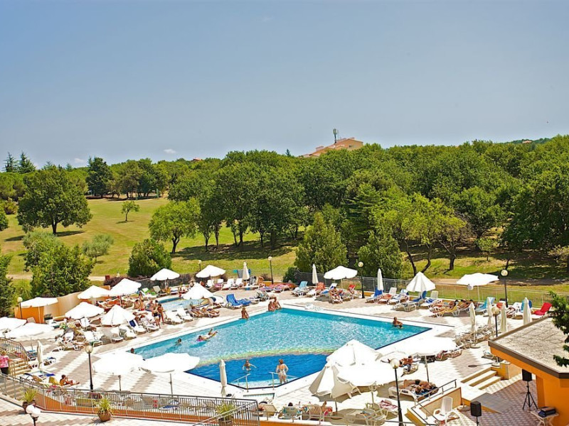 Descriere: Acest hotel de la malul marii este locul perfect pentru familii, cu trasee de mers pe jos si cu bicicleta prin padure, precum si pentru plaja de nisip. Localizare: Situat in zona turistica, aproape de plaja de nisip Bijeca. Facilitati hotel: 2 piscine, 2 terenuri de tenis, teren de fotbal, club si loc de joaca pentru copii, restaurant, bar, terasa, seif la recepetie, Wi-Fi gratuit si parcare gratuita, magazin de suveniruri. Dotari camere: 192 de camere dotate cu aer conditionat, telefon, TV, frigider, baie cu cada sau dus, uscator de par. Camerele cu vedere la mare au un balcon cu o vedere frumoas la Golful Medulin. Masa: All inclusive bufet.