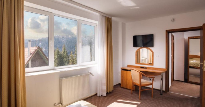 Dotri camere/apartamente: televizor, cablu TV, telefon, minibar, baie cu cabin duLa sau cad, usctor pr.