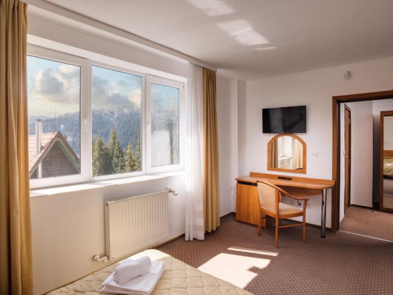 25 de camere single si duble, din care: - 16 camere cu pat matrimonial; - 9 camere cu 2 paturi.