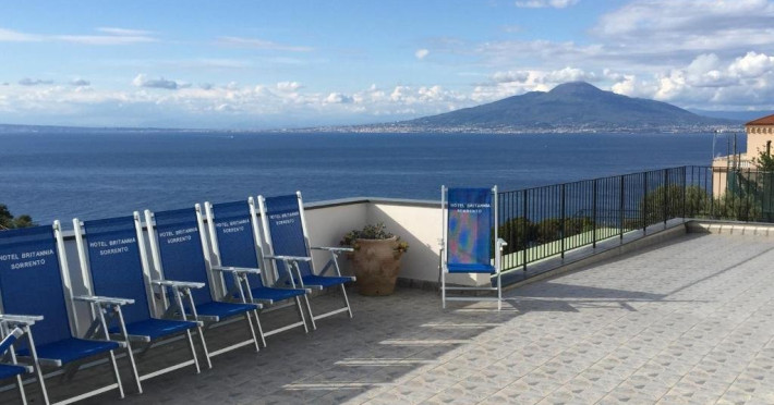 Descriere: Hotelul Britannia este situat la cativa pasi de centrul orasului Sorrento, intr-o zona linistita, panoramica si relaxanta. Localizare: Hotelul se afla in Via Capo, la 10 minute de mers pe jos de centrul istoric, langa statia de autobuz care face legatura cu portul, gara si Piazza Tasso. La 65 km distanta se afla Aeroportul International din Napoli. Facilitati hotel: Hotelul pune la dispozitia clientilor room service si receptie disponibile nonstop, terasa, bar. Dotari camere: Camerele sunt echipate cu aer conditionat, baie cu uscator de par, telefon si TV. Site web: https://www.britanniasorrento.com/ Nota informativa: Pentru anumite facilitati din hotel sau din camera, hotelierul poate solicita taxe suplimentare. In momentul sosirii la hotel solicitati receptionerului sa va informeze cu exactitate asupra lor. Taxa de sejur se va achita de catre clienti direct la hotel.