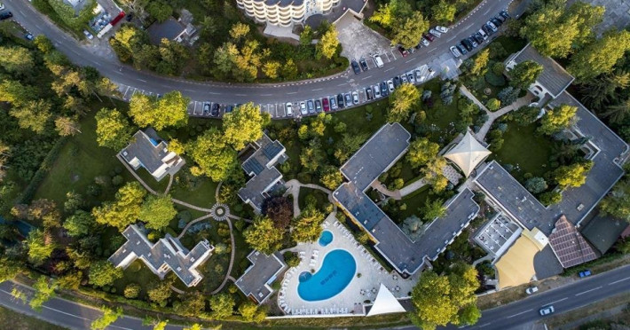 Hotelul dispune de 112 spatii de cazare, situate atat in corpul principal, cat si in cele 4 vile din cadrul resortului. Acestea sunt dispuse astfel: HOTEL: 42 duble cu balcon 4*, 38 duble fara balcon 4*, 3 family room cu balcon 4*, 5 family room fara balcon 4* VILE: 8 apartamente 4*, 12 duble 3*, 4 family room 4* superior, 4 apartamente cu 2 dormitoare 4* superior. Toate unitatile de cazare din vile au balcon sau terasa.