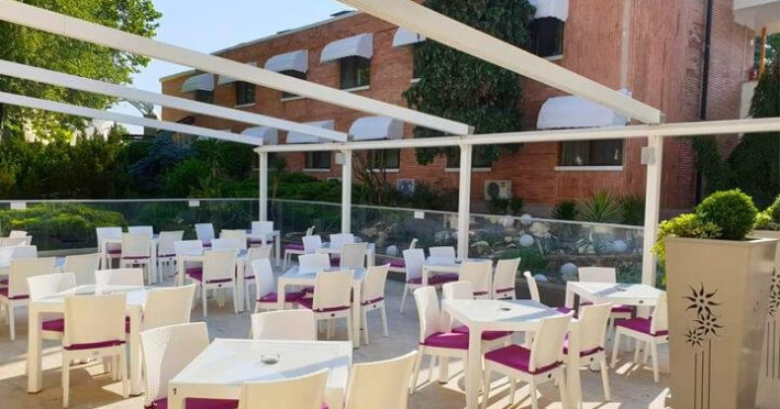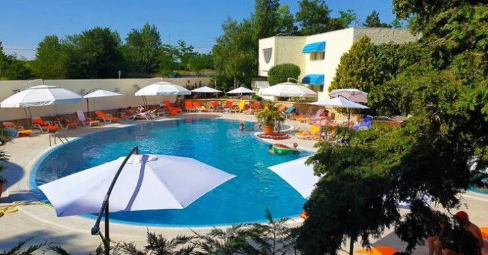 FACILITATI UNITATE Dotari generale: restaurant Garden cu servire a la carte, terasa pizzerie Alberto, cafenea turceasca Istanbul, parcare- taxa, acces gratuit atat la piscina exterioara pentru adulti cat si la piscina exterioara pentru copii, pool bar, loc de joaca si program de animatie pentru copii, sala de jocuri, serviciu spalatorie, sala de conferinta cu capacitate de 50 de locuri, inetrent wi-fi. Adancimea piscinei este de 1.40-1.60, cu apa de mare. Turistii au reducere 50% la tariful sezlongurilor pe plajele Turquoise si Banana Beach.