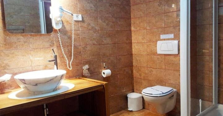 Camere family cu balcon dispun de un pat matrimonial si o canapea extensibila, AC in living, TV, frigider;