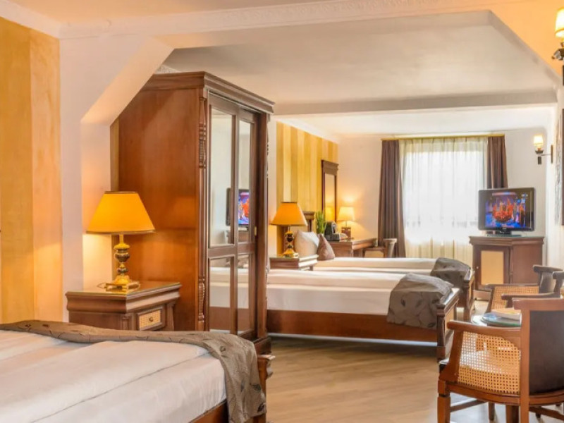 Good choice if youre looking forward to taking some rest at the hotel as much as to walking around the city. Hotel Hotel Korona is located in Sighisoara. This hotel is located minutes away from the city center.Good choice if youre looking forward to taking some rest at the hotel as much as to walking around the city. Hotel Hotel Korona is located in Sighisoara. This hotel is located minutes away from the city center.Spend an evening in a nice atmosphere of the bar. Taste the local cuisine and have a rest in the restaurant. Free Wi-Fi is available on the territory. Ask for more information when checking in. If you travel by car, theres a free parking zone.Also, the following services are available for guests at the hotel: a massage room, a solarium and a spa center. Guests who love doing sports will be able to enjoy a gym. You will find these entertainment amenities on the premises: a ping-pong area. Tourists who cant live without swimming will appreciate a pool and an outdoor pool.In the hotel, you can arrange a business meeting, a board meeting, and even a job as there is a business center and event facilities. The tour assistance desk of the hotel will help you book an excursion. For the free movement around the city, the hotel offers a transfer for you. Additional services that the hotel offers to its guests: a laundry, dry cleaning, ironing, press, car rental, a safe-deposit box and a concierge.The staff of the hotel speaks English, Spanish and German.Spend an evening in a nice atmosphere of the bar. Taste the local cuisine and have a rest in the restaurant. Free Wi-Fi is available on the territory. Ask for more information when checking in. If you travel by car, theres a free parking zone.Also, the following services are available for guests at the hotel: a massage room, a solarium and a spa center. Guests who love doing sports will be able to enjoy a gym. You will find these entertainment amenities on the premises: a ping-pong area. Tourists who cant live without swimming will appreciate a pool and an outdoor pool.In the hotel, you can arrange a business meeting, a board meeting, and even a job as there is a business center and event facilities. The tour assistance desk of the hotel will help you book an excursion. For the free movement around the city, the hotel offers a transfer for you. Additional services that the hotel offers to its guests: a laundry, dry cleaning, ironing, press, car rental, a safe-deposit box and a concierge.The staff of the hotel speaks English, Spanish and German.In the room, for you, there is an alarm clock, a TV, a mini-bar, a bathrobe and slippers. Please note that the listed services may not be available in all the rooms.In the room, for you, there is an alarm clock, a TV, a mini-bar, a bathrobe and slippers. Please note that the listed services may not be available in all the rooms.