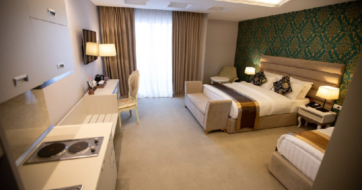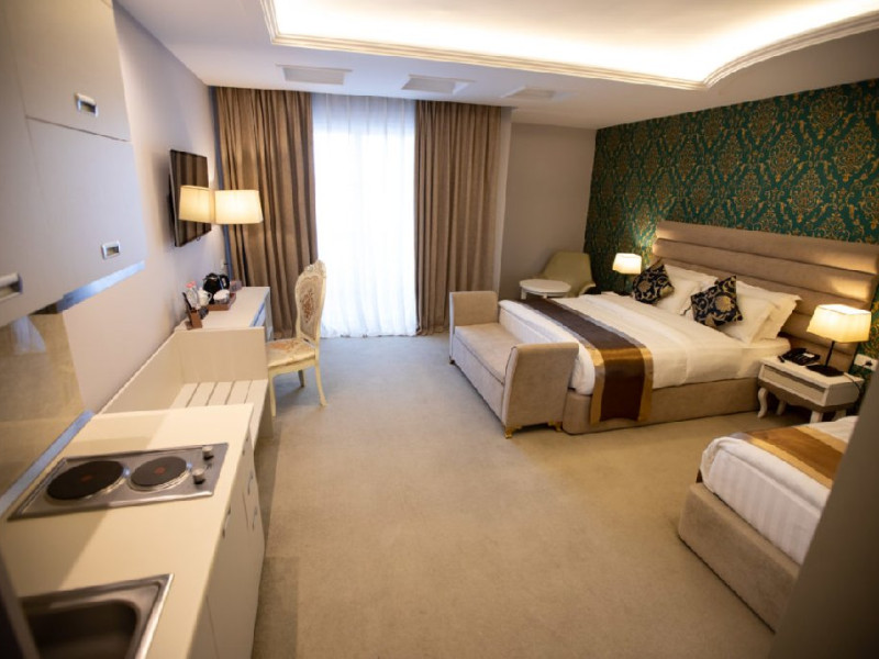 Dotari camere: Toate camerele au aer conditionat, baie privata cu dus, uscator de par, tv cu ecran plat si canale prin satelit, frigider si balcon.