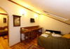Camera este dotata cu pat matrimonial i pat suplimentar, climatizare, minibar, televiziune digitala prin cablu si uscator de par.