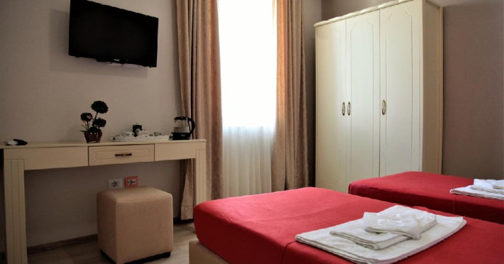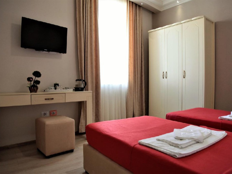 Localizare: Hotel Veliera, este situat la 10 minute de plaja din localitatea Durres Albania, la 4 km de centrul Durres, cu adresa: L nr 3 bulevardi Epidamn, 2000 DurrATs, Albania; Printre punctele de atractie populare din apropierea hotelului se numara plaja Currila, plaja Kallmi si plaja Durres. Aeroportul International Maica Tereza din Tirana, este situat la 35 km de Hotel Veliera. Facilitati hotel: plaja, parcare, bar-restaurant, wifi. Facilitati camera: AC, TV, baie cu dus, frigider. Pagina web: https://www.hotelveliera.com/