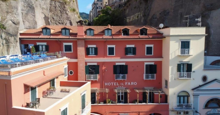 Descriere: Il Faro este un hotel de 3* situat chiar in portul Sorrento. Localizare: Hotelul este la 2 minute de plaja, Piazza Tasso este la 350m, iar aeroportul Napoli la 50 de minute de mers cu masina. Facilitati hotel: internet, seif, camera de bagaje, receptie non-stop, restaurant, bar Dotari camere: aer conditionat, TV LCD, wi-fi, seif, telefon, baie cu dus, uscator de par, articole de toaleta Website: https://www.hotelilfaro.com/