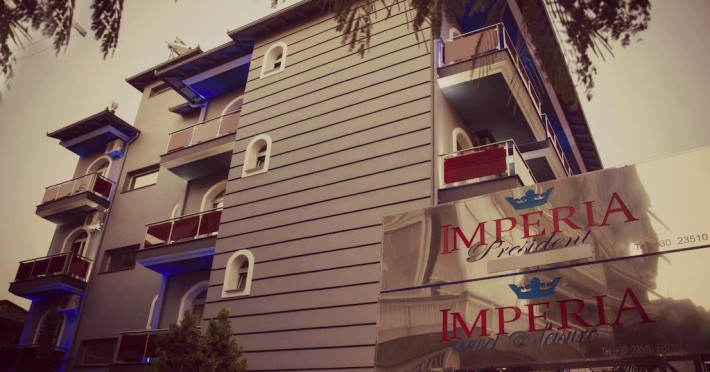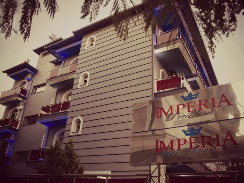 Localizare: Hotelul Imperia President 2* este situat in statiunea Paralia, la aproximativ 150 de metri de plaja. Tip masa: Mic dejun. Descriere: Este situat central, in imediata apropiere a restaurantelor, cafenelelor si barurilor. Facilitati hotel:acces internet, receptie deschisa 24 h, lift, room service, parcare (locuri limitate). Dotari camere: aer conditionat, grup sanitar propriu cu dus, TV LCD satelit cu canale nationale si internationale, seif electronic, uscator de par, minibar, telefon si balcon. Web: www.imperia-president.com
