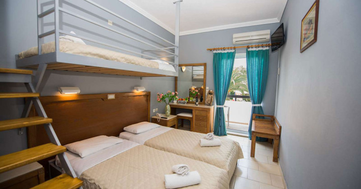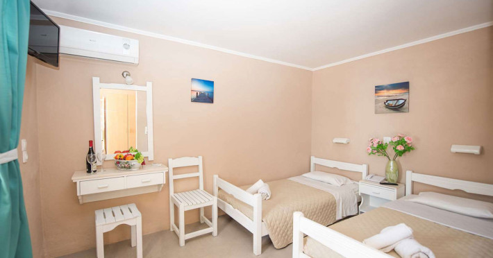 This hotel in the Ipsos-Corfu beach area known as the Golden Mile. Conveniently located in the middle of Ipsos Bay, you will be a few minutes away from all activities. Via public or rented transport, you can easily reach any point in Corfu. You will find a warm and friendly atmosphere to help make your stay on the premises an unforgettable one.