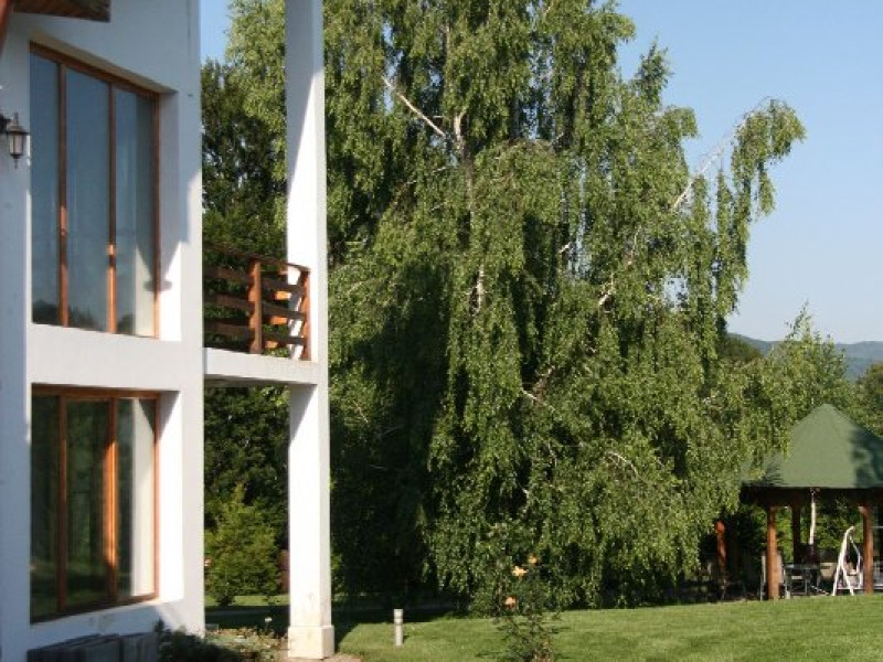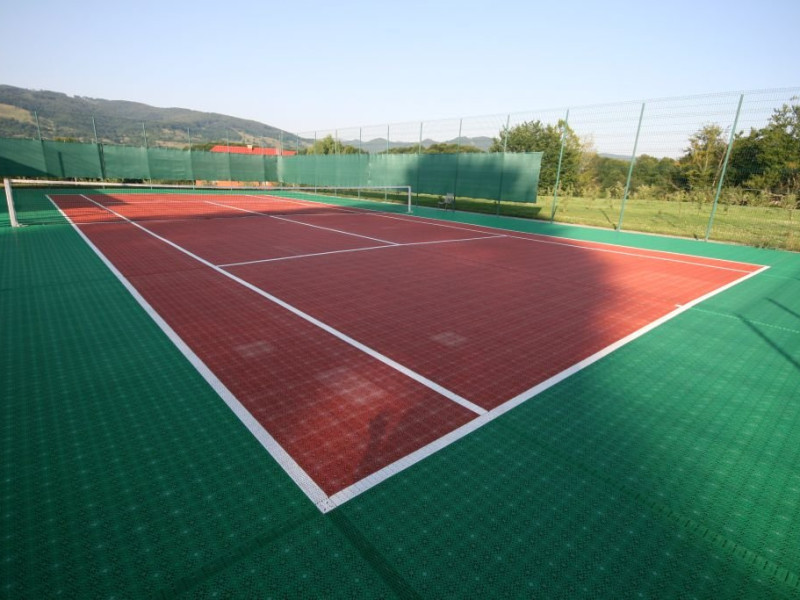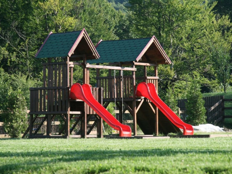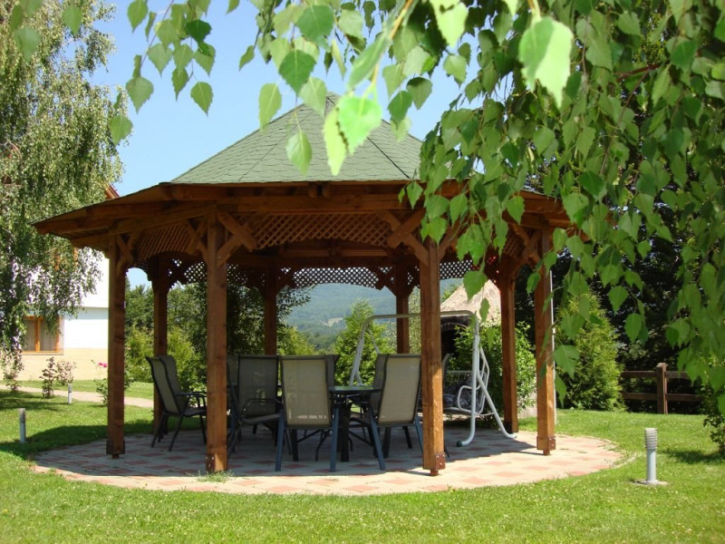 Curtea interioar a pensiunii este spatioas si ofer intimitate pentru tine si familia ta. Copiii se pot juca in sigurant in spatiul de joac amenajat pentru ei, in timp ce tu te relaxezi lang piscin sau pregtesti un grtar cu prietenii. In serile rcoroase de var te poti bucura de timpul petrecut in aer liber la cldura focului de tabr. In cadrul pensiunii beneficiezi de teren de tenis, saun si piscin.
