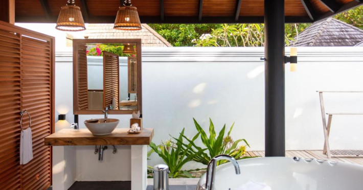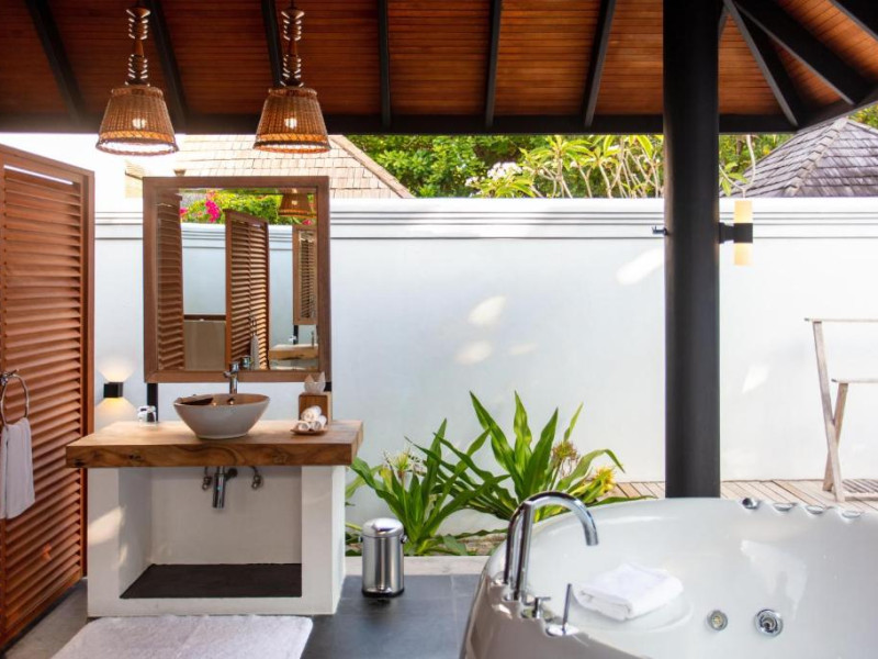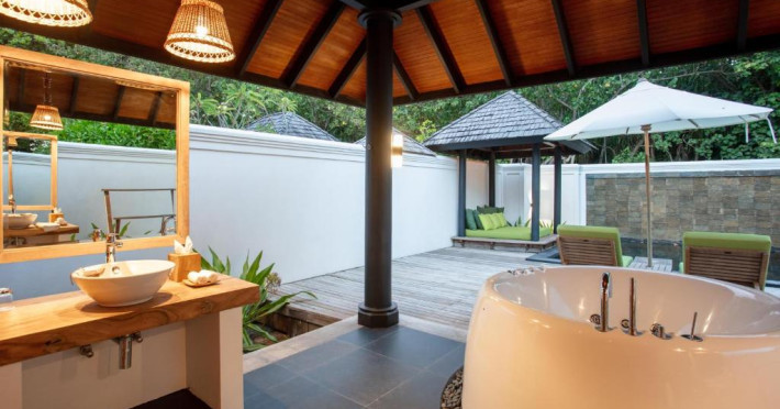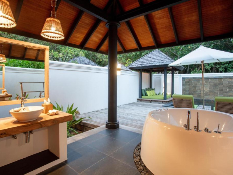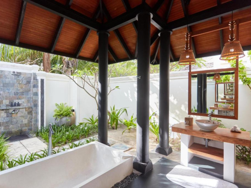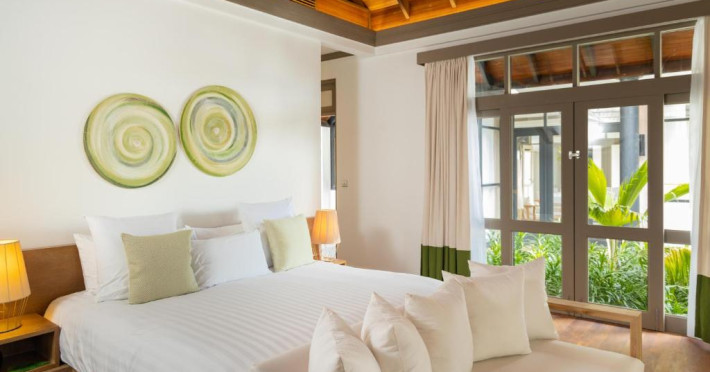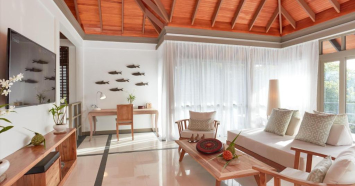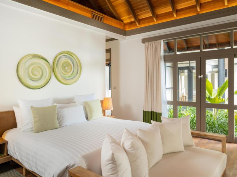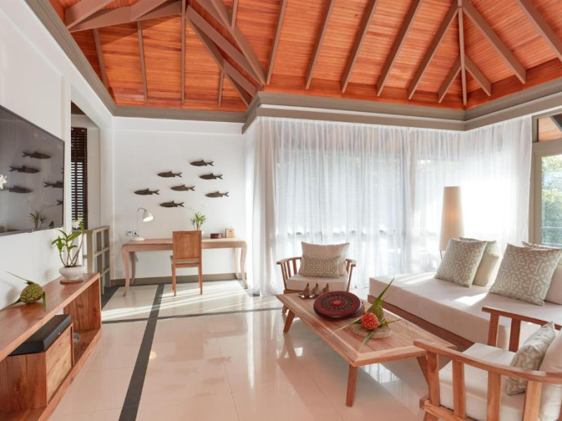 Toate unitățile de cazare spațioase au aer condiționat, TV cu ecran plat, aparat de cafea Nespresso, WiFi gratuit și piscină privată. Pune la dispoziție o gamă de vile situate pe plajă sau deasupra apei, cu vedere la răsărit sau la apus, piscină privată si baie privată. Unele includ cadă spa relaxantă, iar altele au dus cu efect de ploaie in aer liber. Pentru o vacanță cu adevărat specială există 3 resedinte personalizate pentru familii sau prieteni care călătoresc impreună.