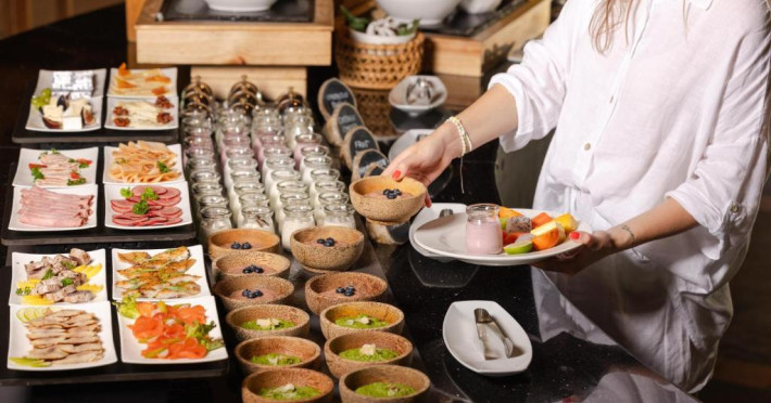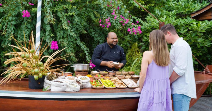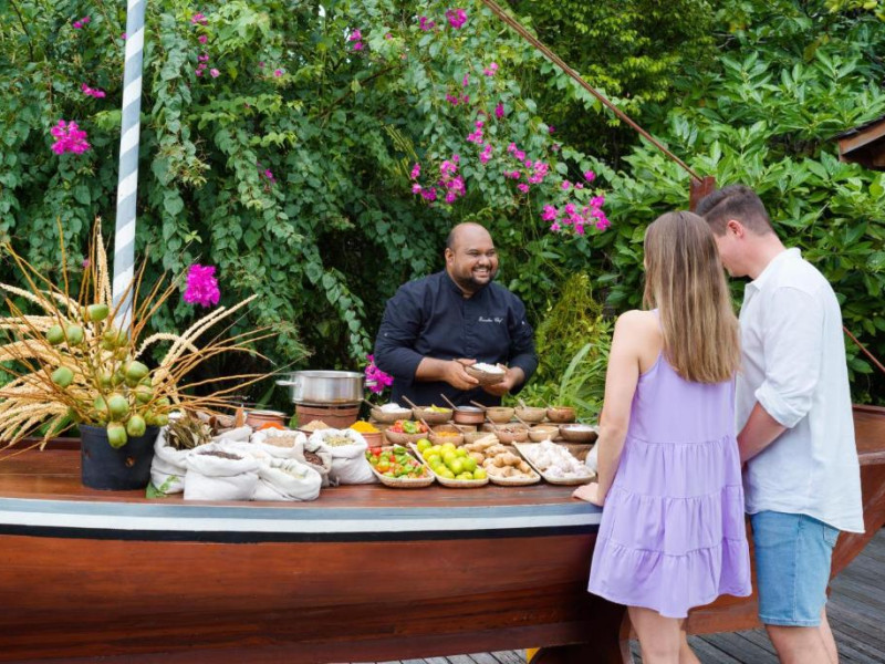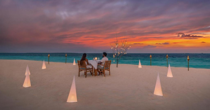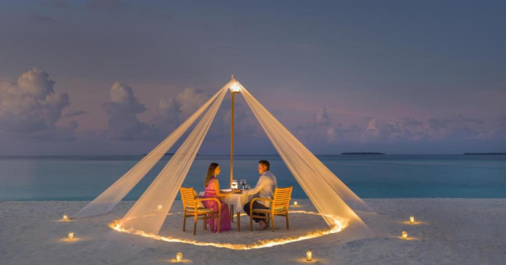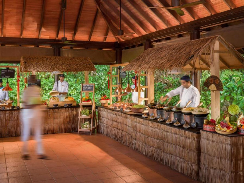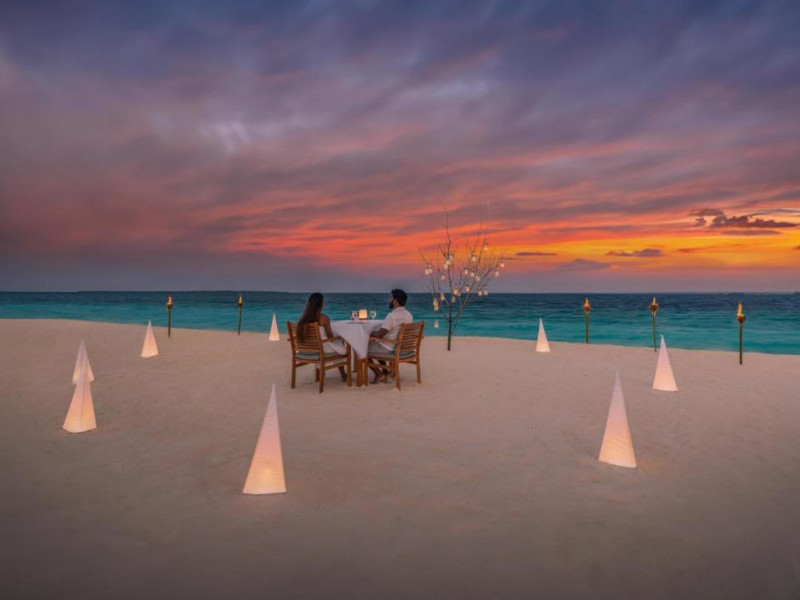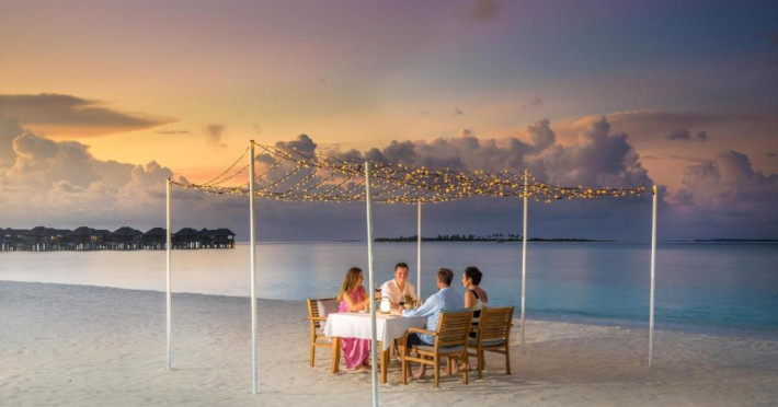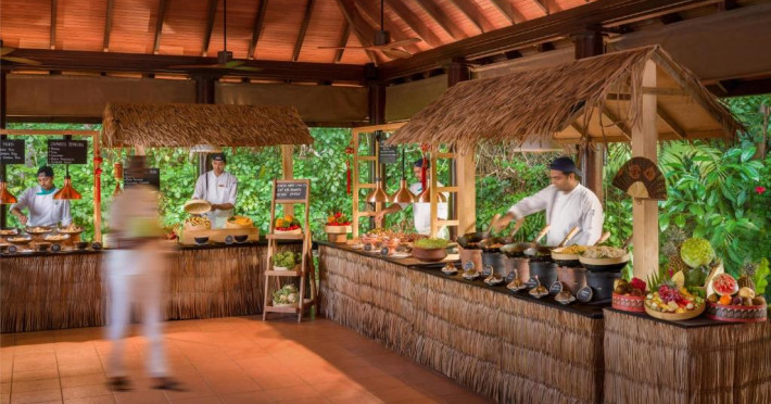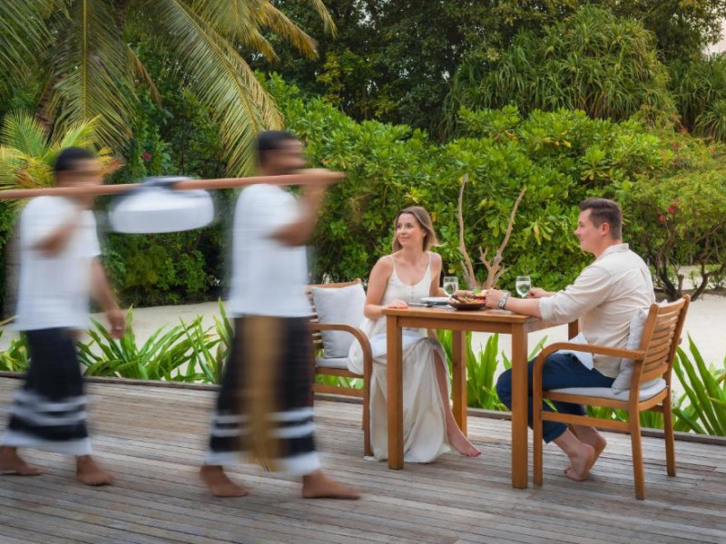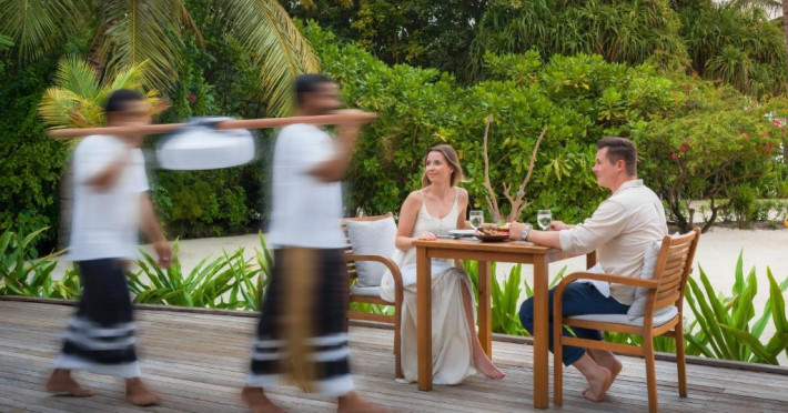 Ocean Grill este situat pe malul mării și servește preparate la grătar si fructe de mare. The Cellar, situat la subsol, oferă cine cu vin pentru cupluri. Alte opțiuni de luat masa includ mancăruri internaționale și preparate din bucătăria maldiviană la restaurantul Kakuni, pizza de casă la bistroul și piscina Andiamo de langă piscină, băuturi langă piscină și gustări la Infinity Pool & Bar. White Orchid Lounge are vedere incomparabilă la Oceanul Indian, cu un meniu de inspiratie asiatică si băuturi seara.