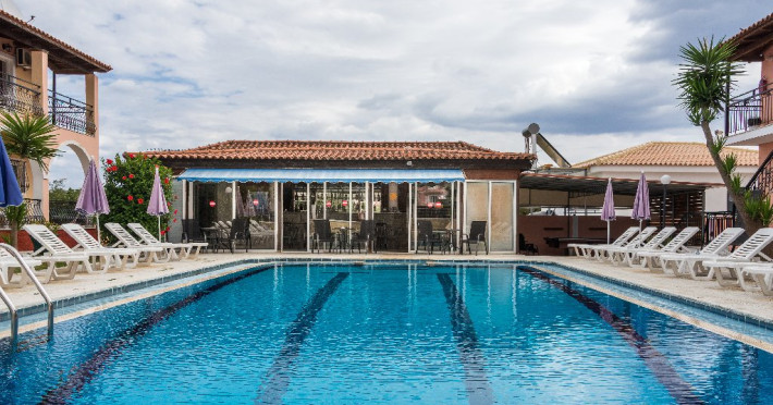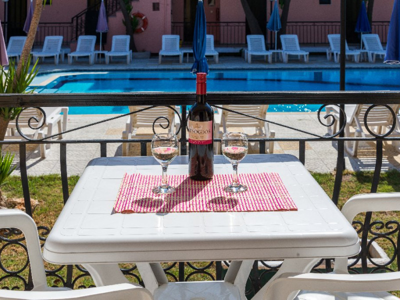 Descriere: Proprietatea este formatq din studiouri care pot gazdui 2 sau 3 persoane si apartamente pentru pana la 5 persoane. Cazarea este in regim self-catering baza si toate unitatile sunt dotate cu chicineta, aer conditionat, baie privata cu dus si balcon mobilat cu vedere la mare sau piscina.