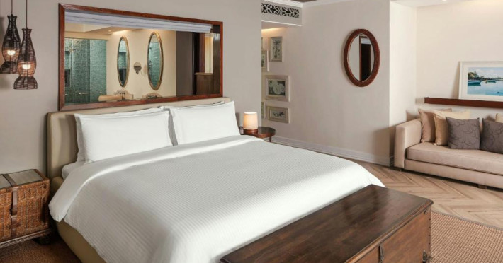 The St. Regis Mauritius Resort se află pe malul mării, oferind vedere panoramică la Oceanul Indian și la Muntele Le Morne Brabant. Acest complex luxos de 5 stele are unități de cazare elegante, centre de fitness și spa separate, precum și 5 restaurante.