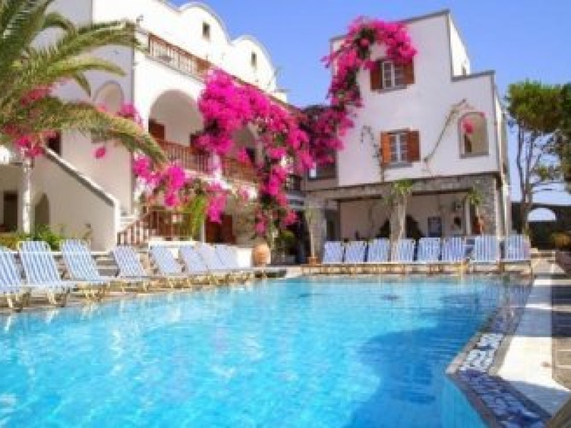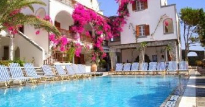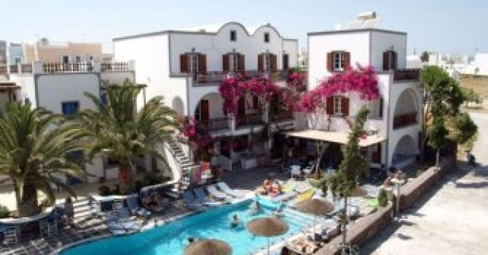 Descriere hotel: hotelul este construit in stil cicladic si are in dotare urmatoarele tipuri de camere: single, duble, triple, maisonette, studiouri.