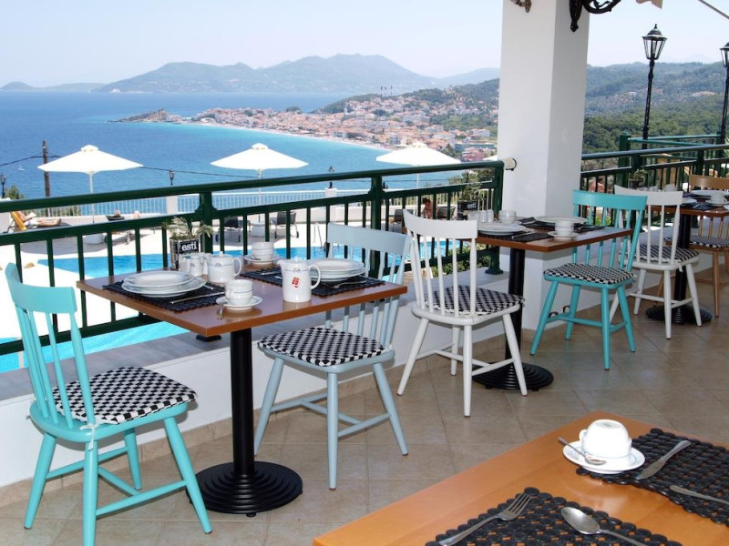 Localizare: Hotelul este situat intr-o zona linistita, pe o panta, chiar deasupra golfului Kokkari, cu vederi panoramice frumoase ale imprejurimilor si marii. Posibilitati de cumparaturi si divertisment in Kokkari la aproximativ 1 km. Statia de autobuz este laaproximativ 250 m. Aeroport la 25 km. Dotari camere: Hotelul dispune de 34 de camere confortabile si dotate cu baie proprie cu dus, uscator de par, telefon, TV, minibar, seif, aer conditionat (in iulie si august) si balcon. Facilitati hotel: Sala de mic dejun cu terasa in aer liber, bar cu terasa ce serveste si gustari, sala vizionareTV, internet Wi-Fi gratis in lobby, piscina cu sezlonguri si umbrele, prosoape la piscina, tenis de mara, transport gratuit zilnic in Kokkari, parcare gratuita. Plaja: O plaja cu pietris poate fi gasita la doar 450 m distanta. http://kalidon.gr/panorama/