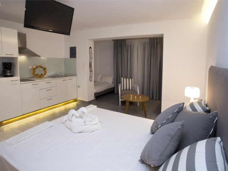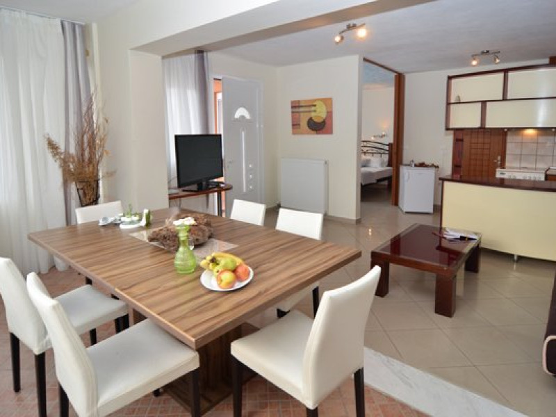 Descriere: In cazul in care doriti cazare de calitate intr-un spatiu nou de cazare, pozitionat la 3-4 minute de mers pe jos de centrul Potos si de plaja, Kapahi apartamente este alegerea perfecta. Localizare: Este situat la 200 m de faimoasa plaja San Antonio si la numai 250 m de centrul Potos. Facilitati hotel: piscina, Wi-Fi in spatiile publice, parcare, aer conditionat. Dotari camere: aer conditionat, TV LCD, chicineta complet utilata cu toaster, fierbator si sandwich maker, frigider, uscator de par. Exista 2 apartamente cu vedere la mare, in ultimul etaj. Fiecare are un dormitor separat, cu un pat dublu si o camera de zi / sufragerie cu o canapea extensibila dubla. Acestea au un balcon sau terasa mare, cu vedere directa sau vedere latera lamare, o chicineta bine echipata si o baie cu dus. Mai sunt si 2 apartamente de lux, la cativa pasi deasupra nivelului de gradina. Fiecare are un dormitor separat cu un pat dublu si o camera de zi / sufragerie cu o canapea extensibila dubla. Au ferestre mari, o chicineta bine echipata si o baie cu dus. Cele mai spatioase sunt Suitele care sunt la nivelul gradinei. Fiecare Suita are jacuzzi, un pat dublu king size, o canapea dubla si o canapele extensibile de o persoana cu saltele ortopedice care de folosesc pentru copii (lungime 1,70 m). Acestea au un balcon privat mare si o chicineta bine echipata, baie de servici si baie cu dus. Masa: Mic dejun. Plaja: publica, la 200 metri. Pagina web: www.facebook.com/kapahiseaviewpotos