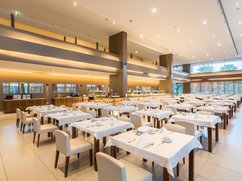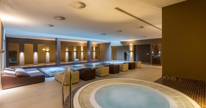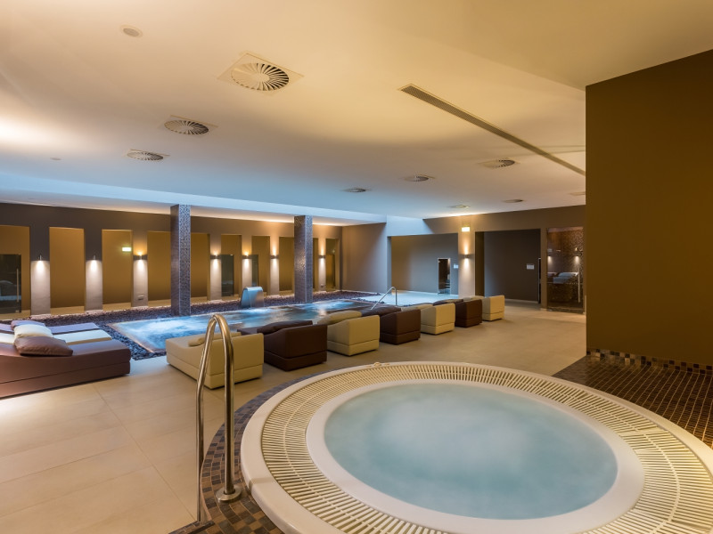 An enormous Spa (1.800 m2) with cutting-edge facilities and therapies, gym, 3 outdoor pools, one separate for children, free Wi-Fi throughout the hotel, 3 restaurants and 2 bars, ground level with limited parking spaces.