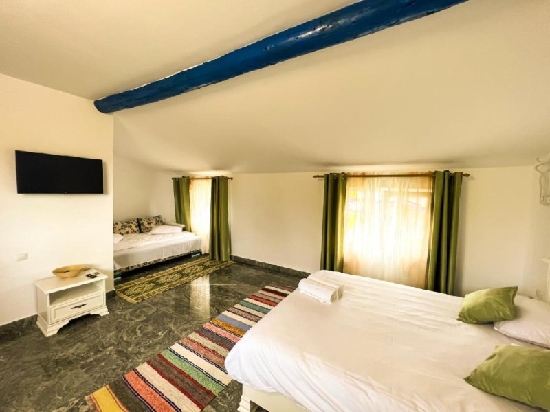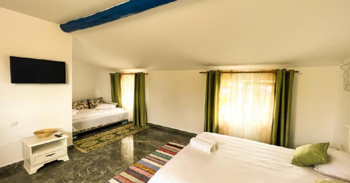 Camere: La Konac are o capacitate de cazare de 14 locuri: 4 camere duble si 2 camere triple dotate cu baie proprie, televizor/cablu, acces internet.