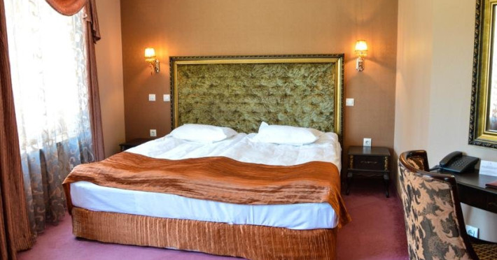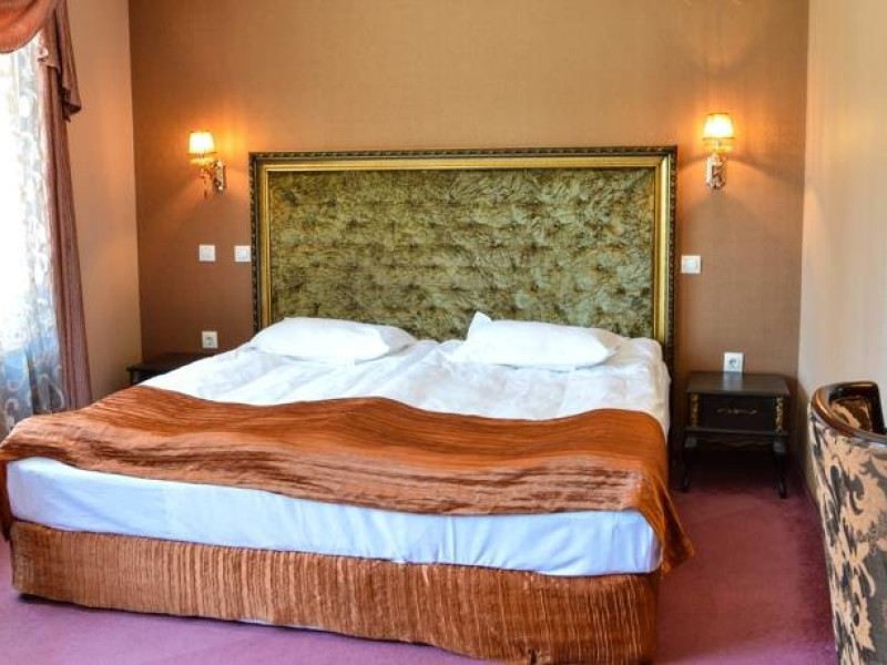 Dotari camere : In structura de cazare a hotelului exista 28 de camere duble luxoase, 1 studio si 1 apartament cu 2 dormitoare. Toate camerele au in dotare: grup sanitar propriu, TV, minibar, telefon, aer conditionat, internet, terasa. Studioul si apartamentul dispune de jacuzzi.
