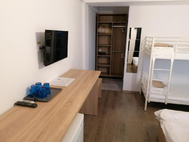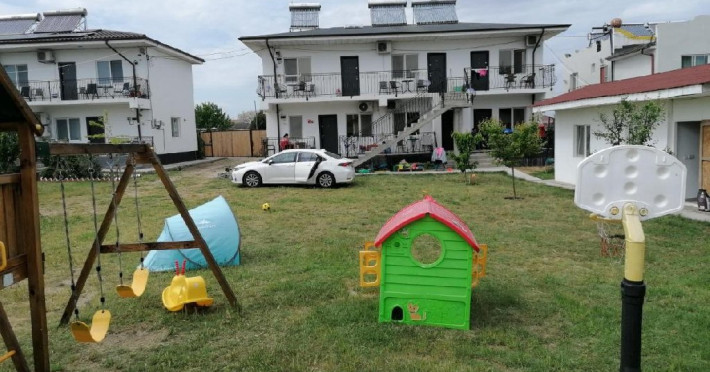 Casa detine parcare gratuita la proprietate, are 6 unitati de cazare oferite spre AZnchiriere, toate cu capacitate maxima de 4 pers/camera, astfel: - o casuta de 24 mp utili, cu baie proprie, frigider, Tv, uscator de par si Ac. Casuta are si bucatarie externa echipata complet la care au acces toti turistii cazati pe proprietate; - 4 camere a cate 22 mp utili fiecare, cu intrare separata, baie proprie, frigider, Tv, uscator de par, Ac si acces pe terasa; - 1 apartament cu doua dormitoare, intrare separata, baie proprie, frigider, Tv, uscator de par, 2 Ac si acces pe terasa. Toate camerele au vedere spre curtea interioara de 1, 000 mp.